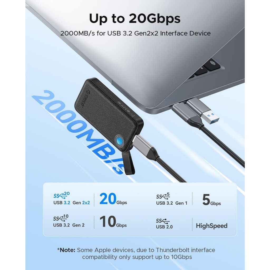 Orico-b20 รองรับ 20Gbps สำหรับการถ่ายโอนข้อมูลที่รวดเร็วเหมาะสำหรับไฟล์ขนาดใหญ่วิดีโอ HD และภาพจำนวนมากตอบสนองความต้องการในการจัดเก็บและการถ่ายโอนข้อมูลที่หลากหลายได้อย่างง่ายดาย