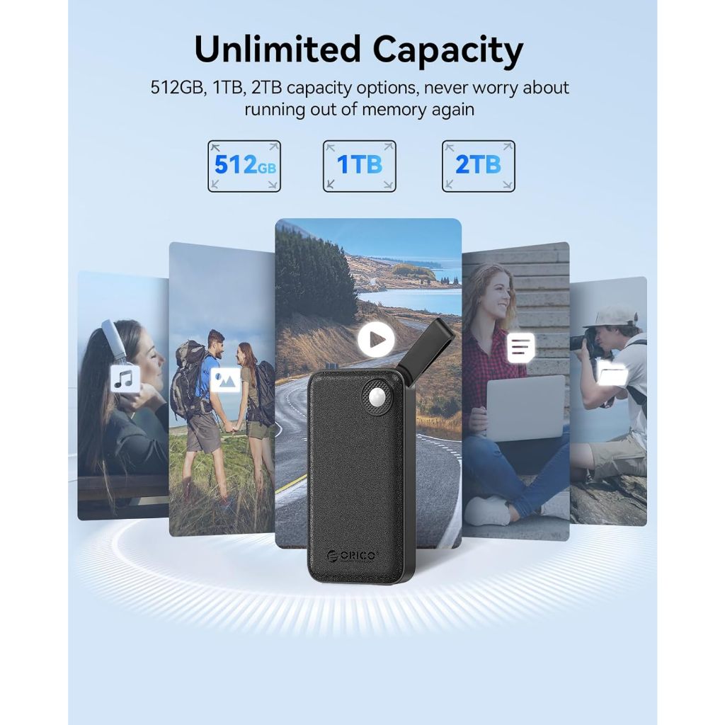Orico-b20 มีตัวเลือกความจุ 512GB, 1TB, 2TB และ 4TB นำเสนอพื้นที่เก็บข้อมูลที่กว้างขวางสำหรับเอกสารและไฟล์สื่อระดับมืออาชีพจัดการความต้องการส่วนบุคคลและการทำงานต่างๆได้อย่างง่ายดาย