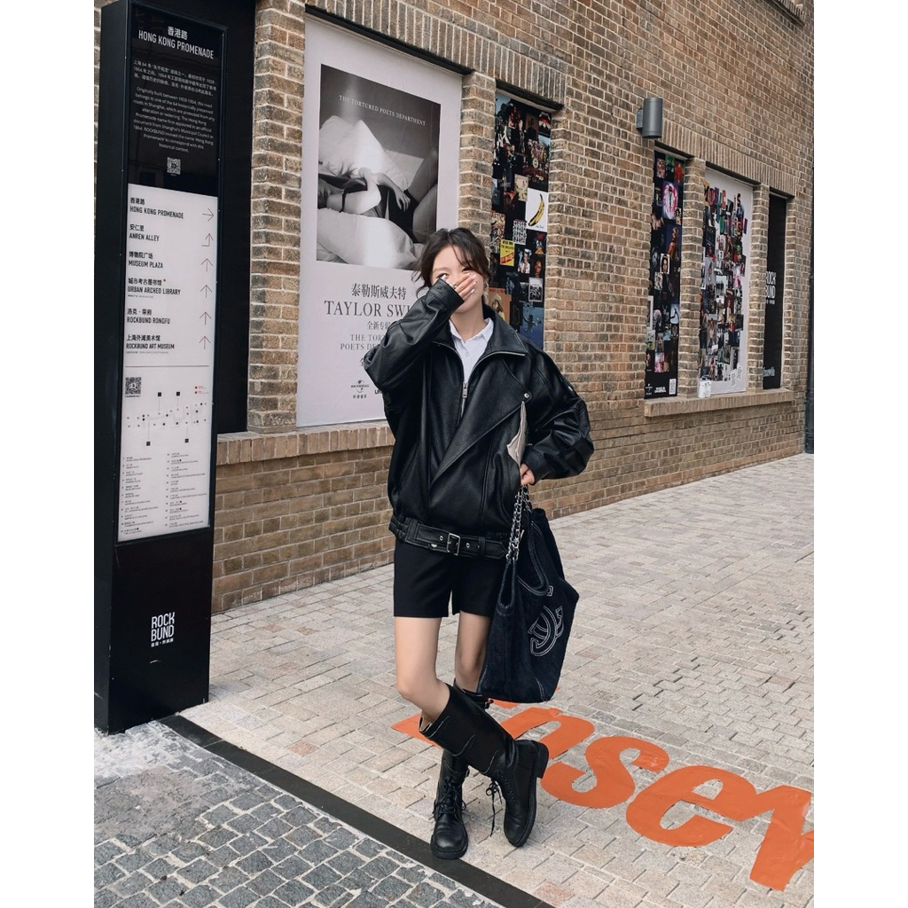 #OversizedLeatherJacket #LeatherStyle #StreetStyle #สาวเท่สไตล์มินิมอล #ลุคสายฝอ #แจ็คเก็ตหนังผู้หญิง #พร้อมส่งคะ #เสื้อหนัง #เสื้อหนังผู้หญิง