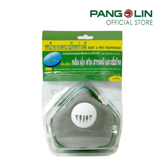 Pangolin(แพงโกลิน) หน้ากากคาร์บอน ป้องกันฝุ่นละอองและกลิ่นเจือจาง แบบครอบ ชนิด1วาล์ว รุ่นMASK0008(TG-40SV) สีเทา