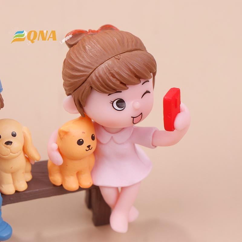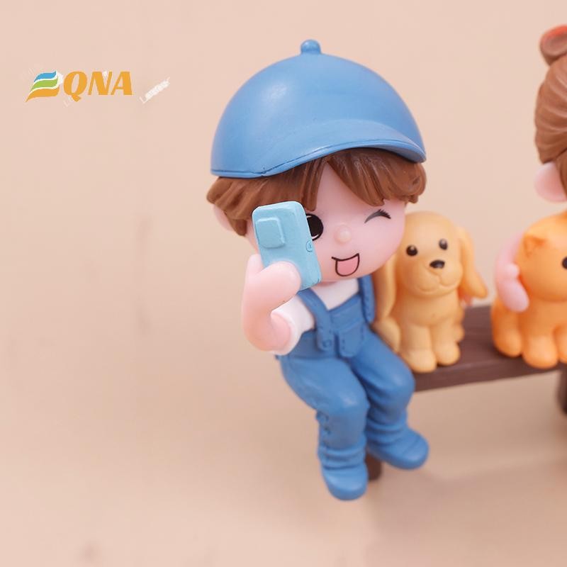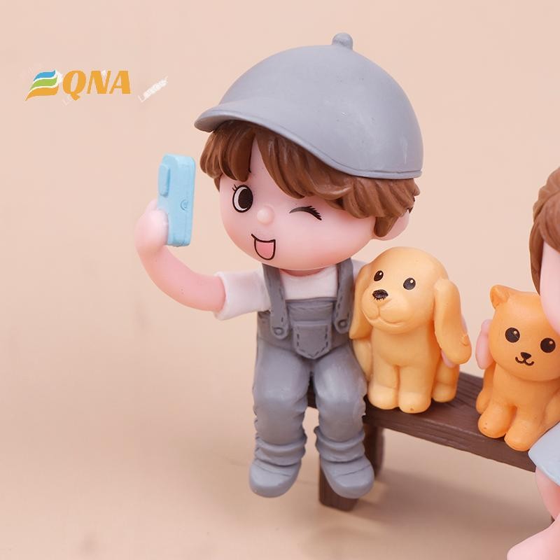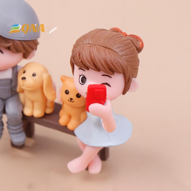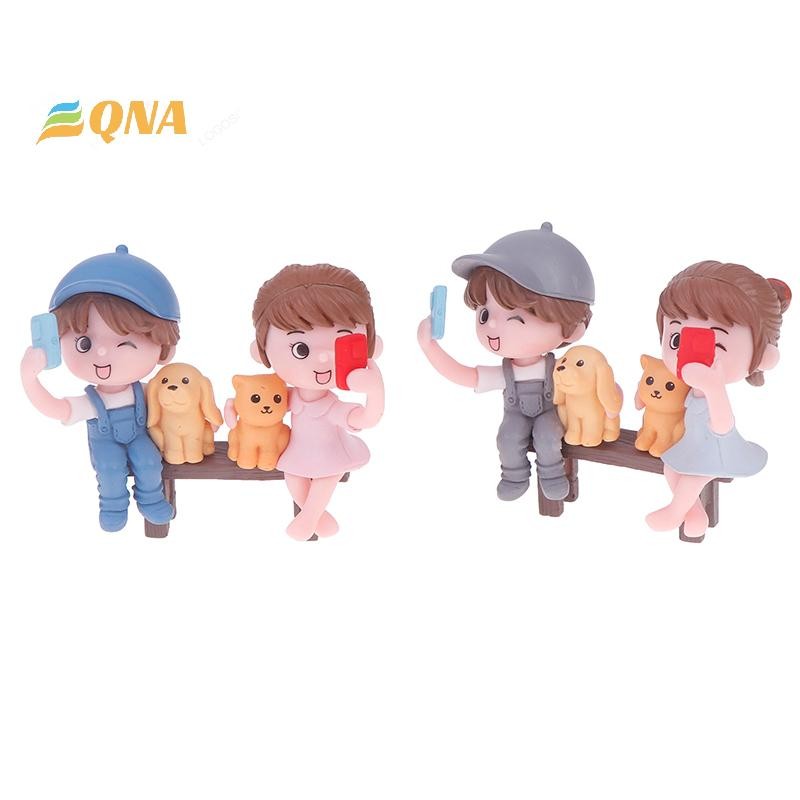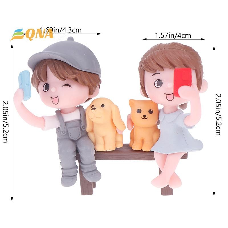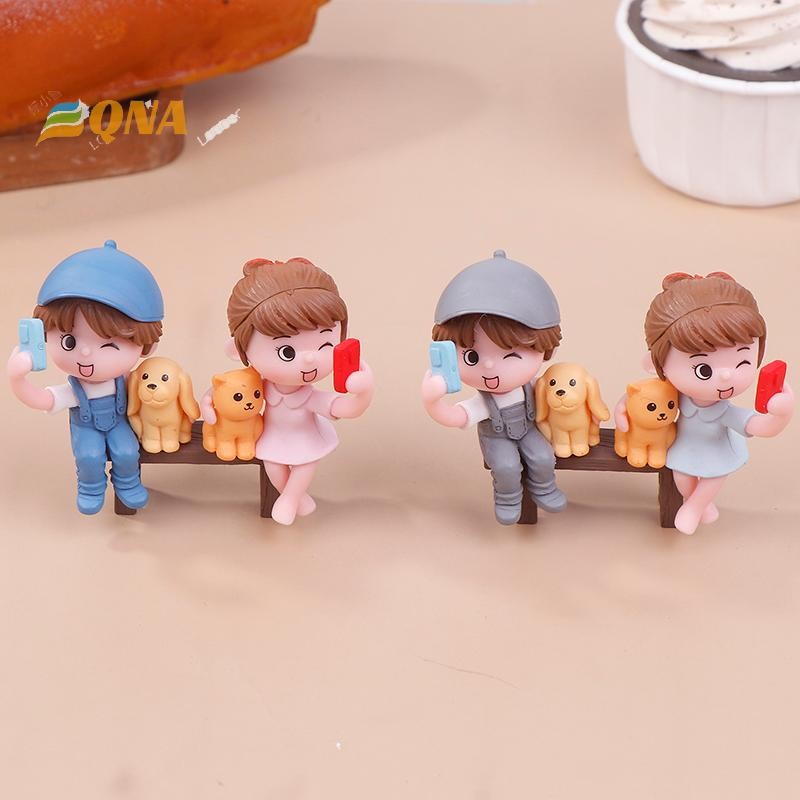[QNA] 2 ชิ้น/คู่คนรักน่ารักถ่ายภาพSelfiesบนสตูลเค้กตกแต่งเครื่องประดับรถคู่Figurines Miniature Craft Fairy Garden Decorใหม่