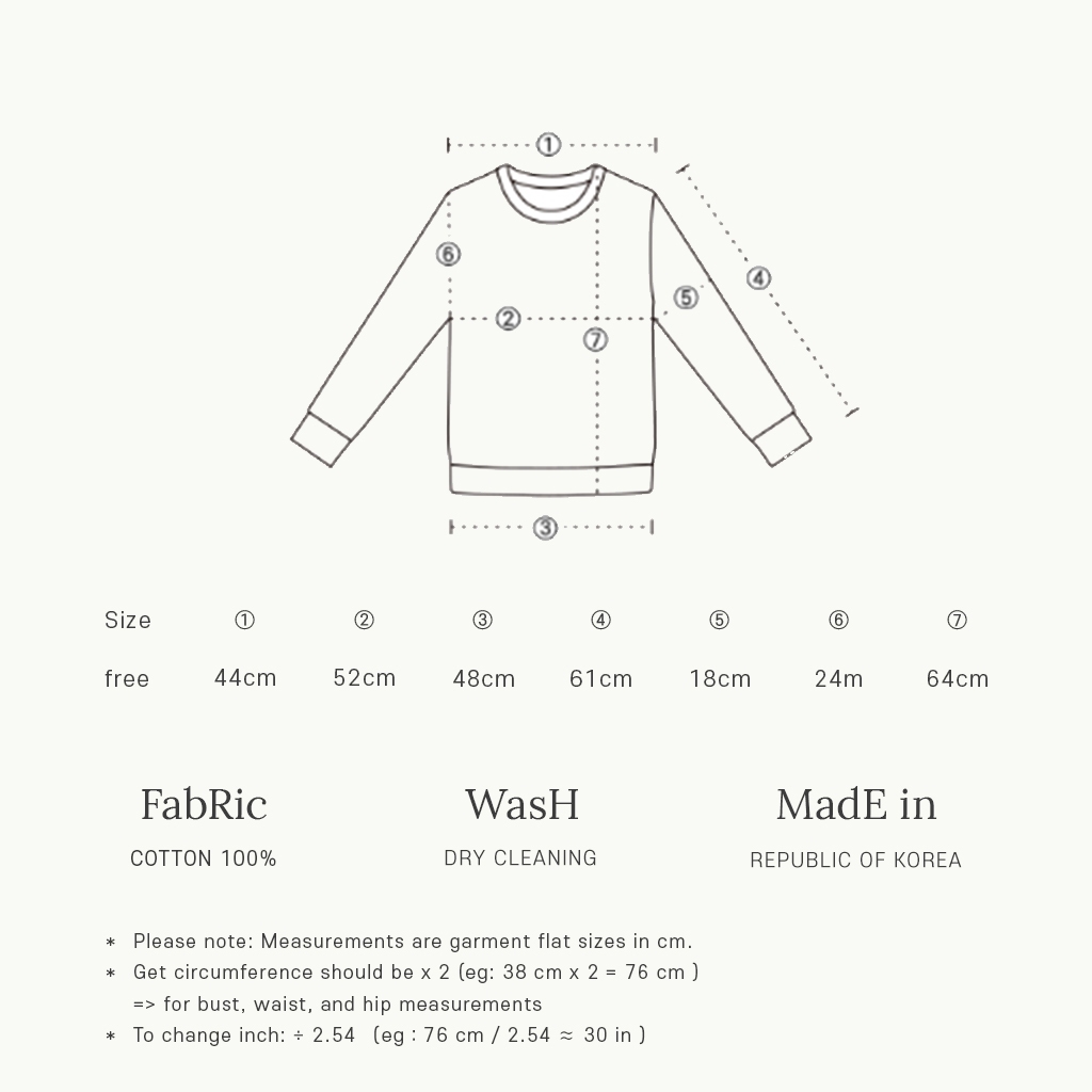 ขนาดที่ระบุเป็นขนาดเสื้อผ้าเมื่อวางราบ วัดเป็นเซนติเมตร