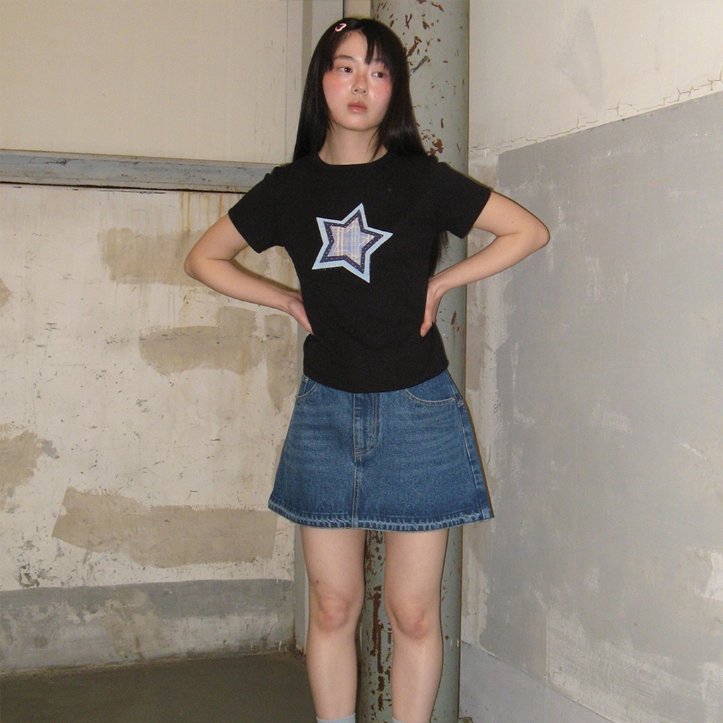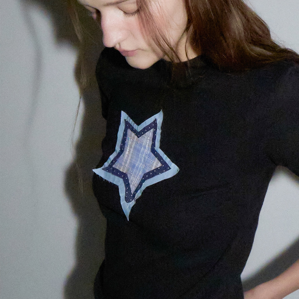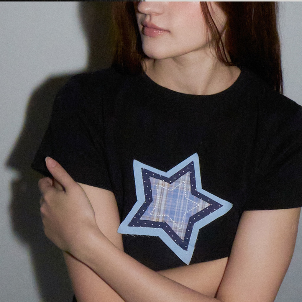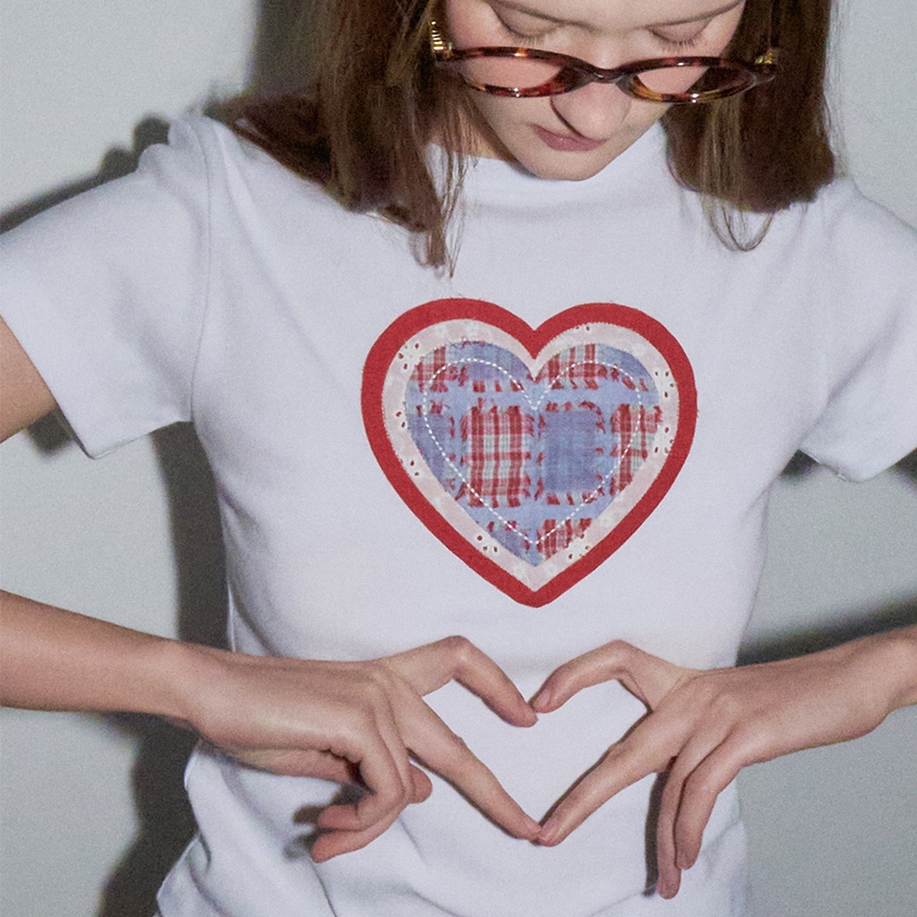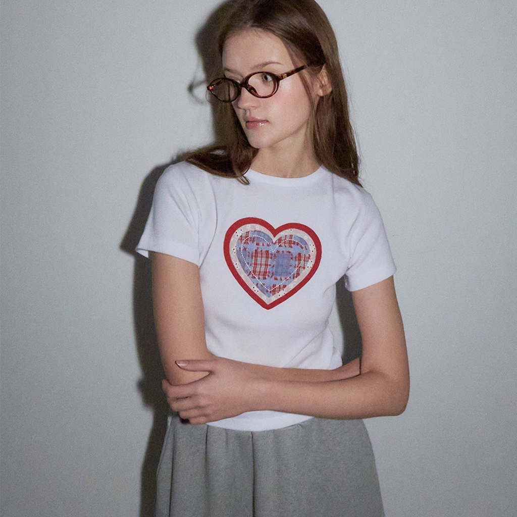 [RONRON] Shape Applique Slim Crop T Shirts / 2 colors