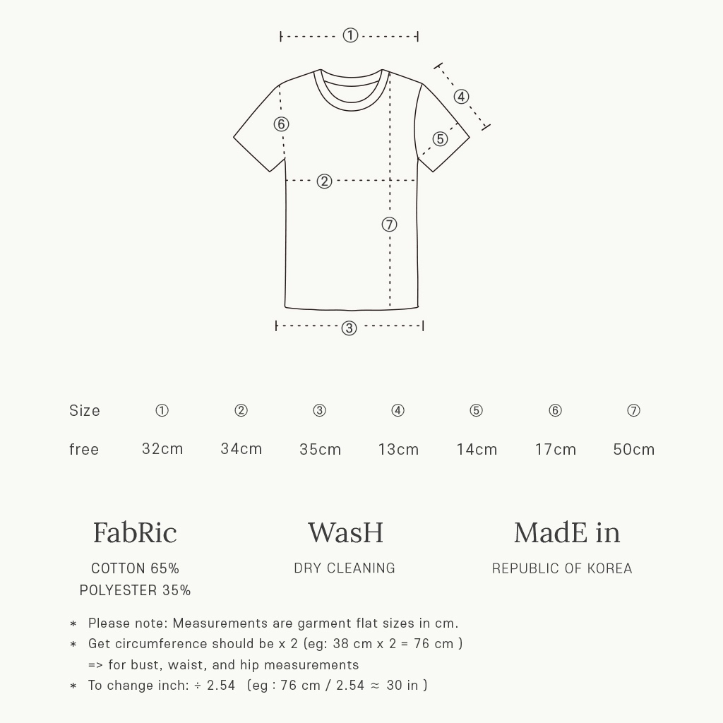 ขนาดที่ระบุเป็นขนาดเสื้อผ้าเมื่อวางราบ วัดเป็นเซนติเมตร