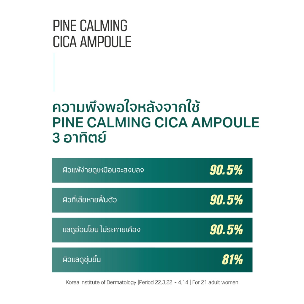 แอมพูลเนื้อบางเบา นุ่มลื่น เกลี่ยง่าย ซึมเข้าสู่ผิวได้ดี อุดมด้วยสารสกัด PINE CICA ACTIVER™ และ CICA 5 ชนิดช่วยฟื้นฟูผิวที่แห้ง หยาบกร้านหรือระคายเคืองให้กลับมาเรียบเนียนแข็งแรงขึ้นอีกครั้ง พร้อมมอบความชุ่มชื้นอย่างล้ำลึกด้วยไฮยาลูรอนิค 3 โมเลกุล และผลัดเซลล์ผิวอย่างอ่อนโยนด้วย LHA เหมาะสำหรับผู้ที่มีผิวแพ้ง่าย ผิวเป็นสิว หรือมีแนวโน้มระคายเคืองง่าย