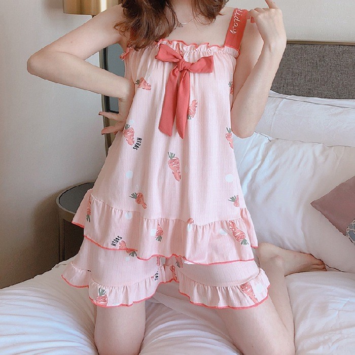 💚Sexy Girls💜ถูกที่สุดชุดนอน ✨ชุดนอนผู้หญิง เซตชุดนอนเสื้อสายเดี่ยว+กางเกงขาสั้น 🚚ส่งไวจากไทย1-3วัน (H9318)
