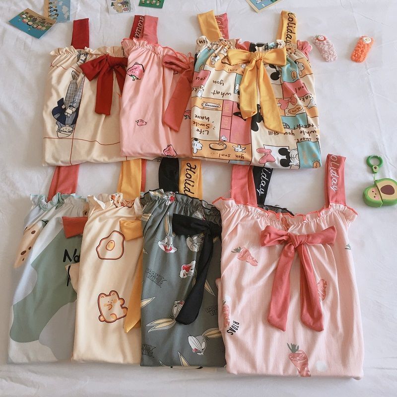 🚀รายละเอียดสไตล์: ชุดนอนสายเอี๊ยมใส่สบาย หลวม วัสดุโพลีเอสเตอร์ นุ่มและละเอียดอ่อน สวมใส่สบายมาก ลายการ์ตูนน่ารักหลากหลาย ดีไซน์ยืดหยุ่น ไม่จำกัดน้ำหนัก