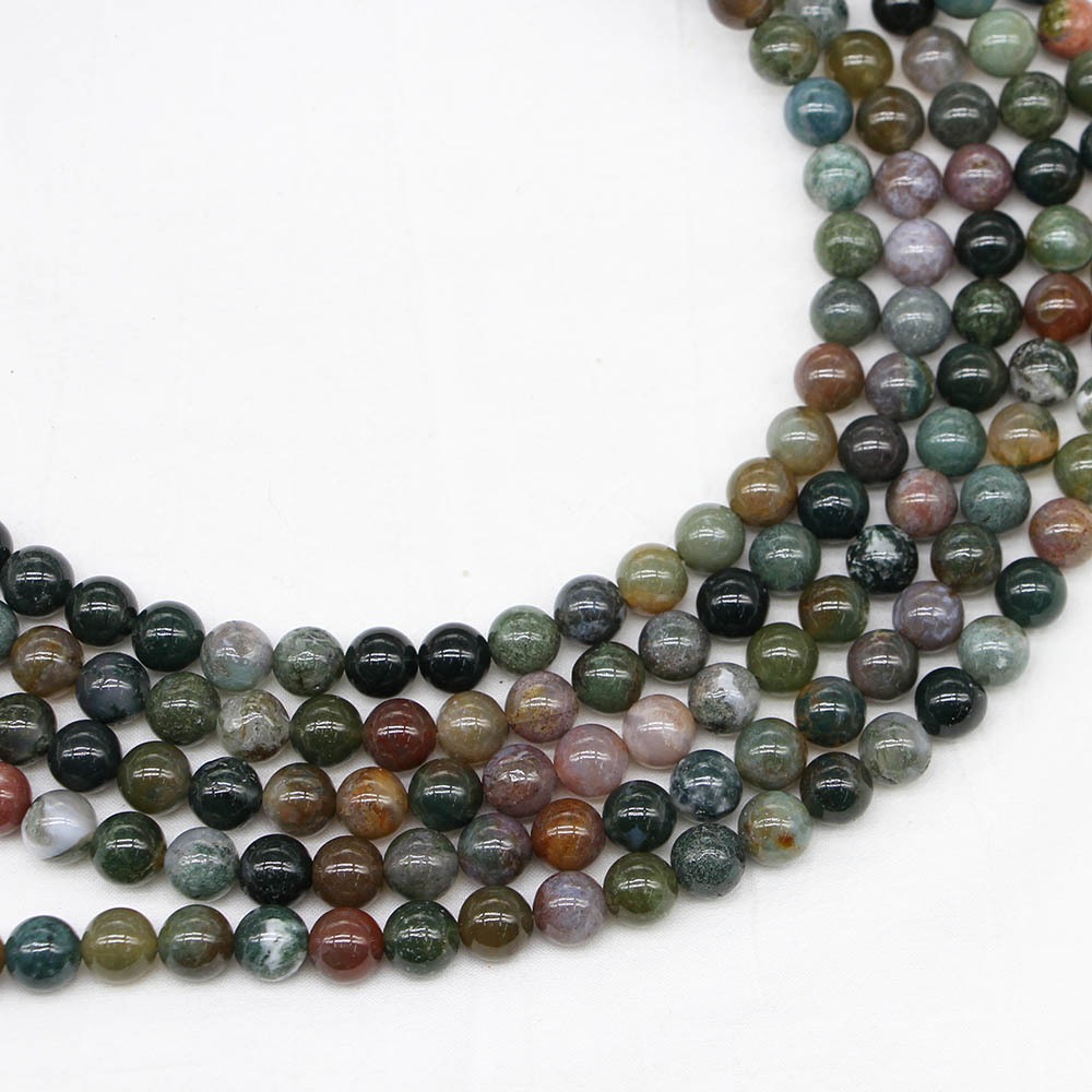 St.kunkka หินอาเกตอินเดีย (Indian Agate) หยกห้าสี หินแท้ หินนำโชค เสริมมงคล DIY สำหรับทำสร้อยข้อมือ 4-12mm
