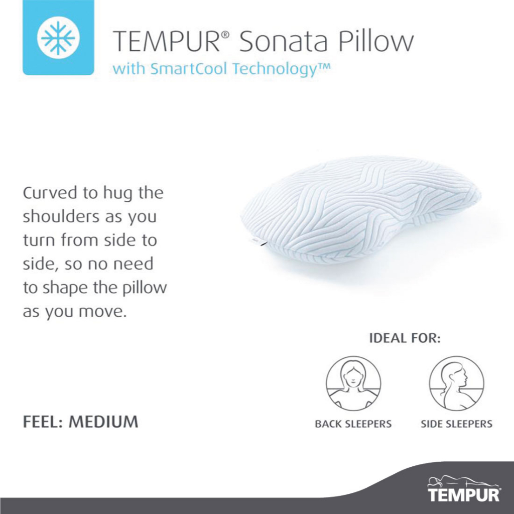 ▻ The TEMPUR® Sonata Pillow with SmartCool Technology™ is perfect for people who shift from side to side during the night.