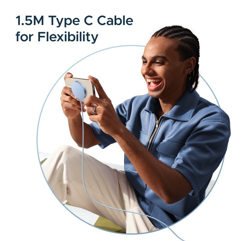 3.🔄 สาย Type-C ยาว 1.5 เมตร – ยาวพอให้เล่นมือถือหรือดูวิดีโอระหว่างชาร์จได้อย่างสบาย