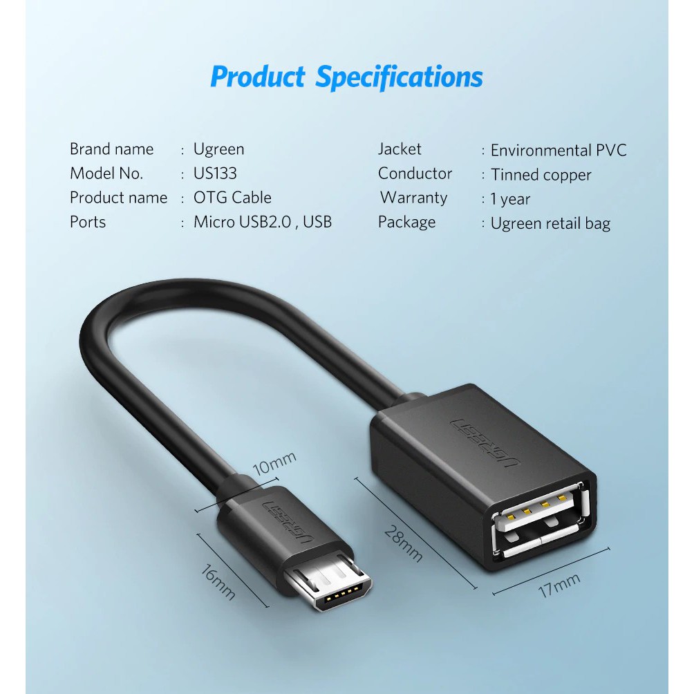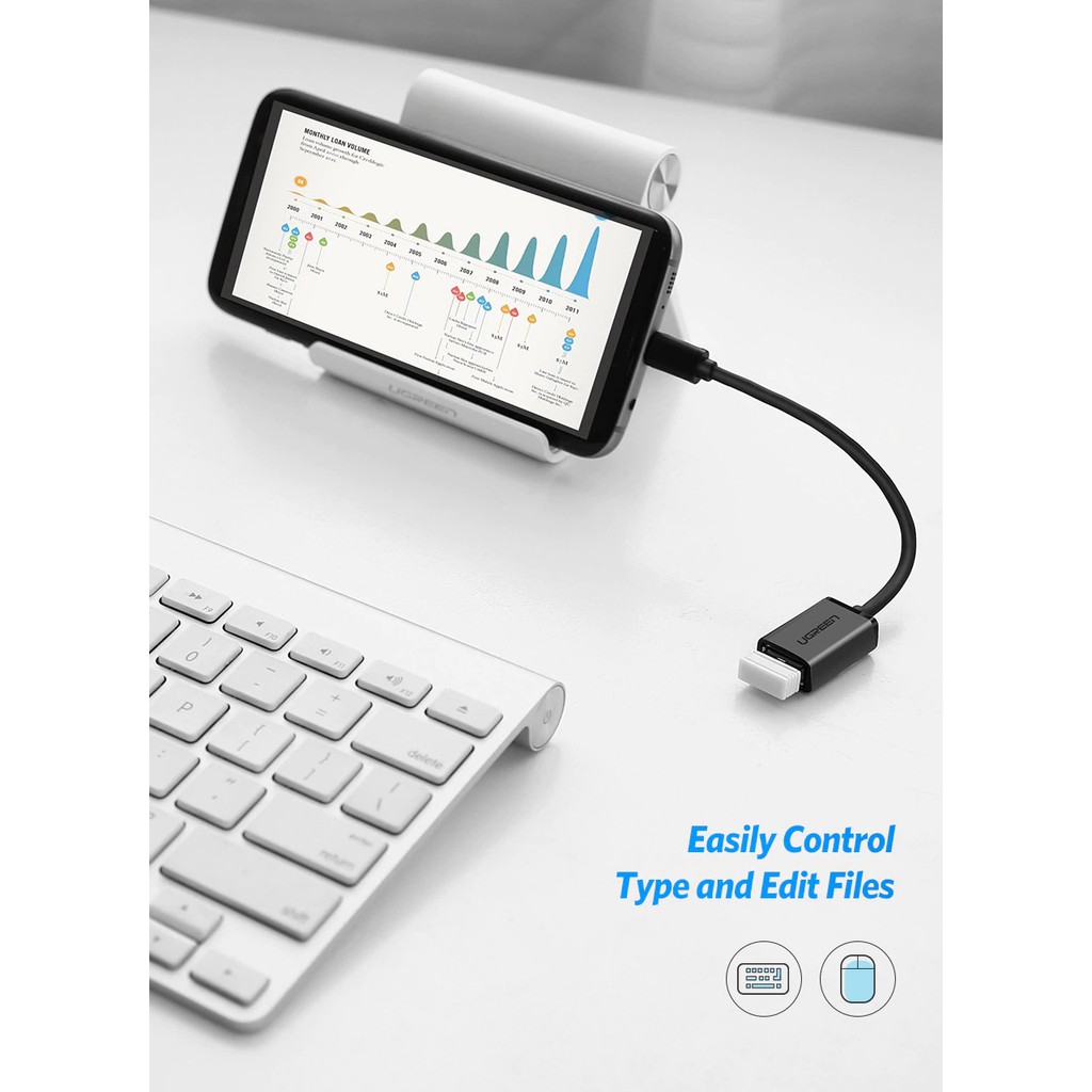 Only 12cm portable Ugreen OTG cable provides a convenient and simple smart phones or tablets host replacement of PC to view picture, listen to music, data transform from flash drivers, edit files with keyboard or mouse