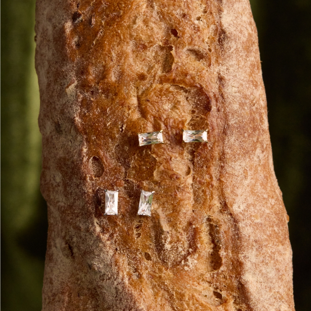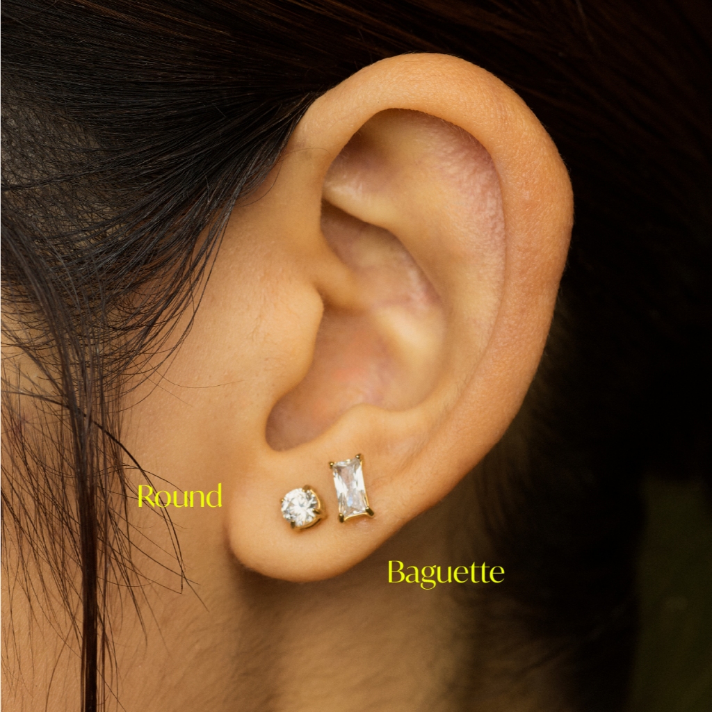 Petite Gem Baguette Ear Stud Gold / White Gold (Size 6x3mm 1090.-) ต่างหูประดับเพชร Zirconia Gem ทรง Baguette เป็นทรงที่ใส่ง่าย ใส่ได้ทุกวัน สามารถใส่ติดหูได้เลยค่ะ
