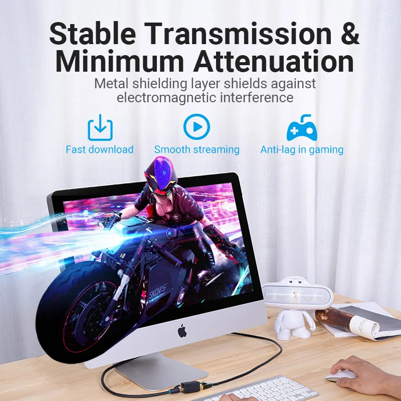 ตัวเชื่อมต่อนี้มีชั้นป้องกันโลหะตัวเชื่อมต่อนี้ป้องกันสัญญาณรบกวนแม่เหล็กไฟฟ้าเพื่อให้แน่ใจว่าการส่งผ่านเครือข่ายมีเสถียรภาพและไม่สะดุด