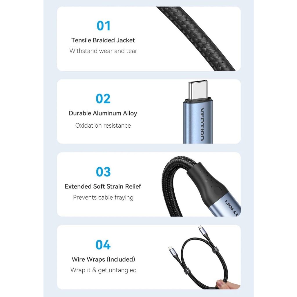 āļāļąāļ§āđāļĨāļ·āļāļāļāļĩāđāđāļĨāļ·āļāļVENTION USB 4.0 Type-C, Cotton Braided, fast charging PD240W, 40 Gbps data transfer rate, 8K@60Hz Aluminum Alloy Shellāļŋ399