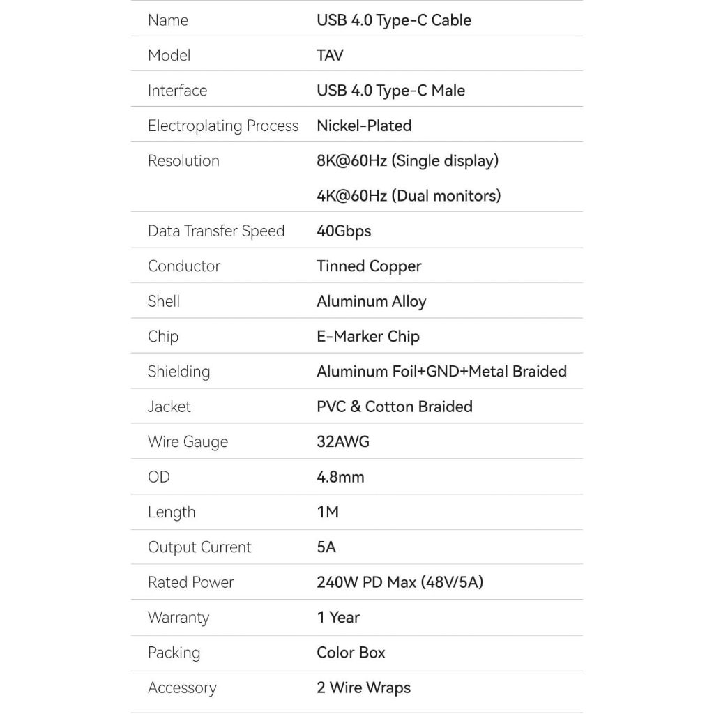 Cotton Braided USB 4.0 C Male to C Male 5A Cable PD240W