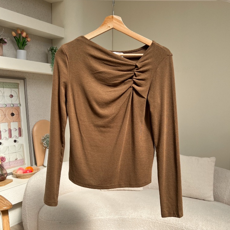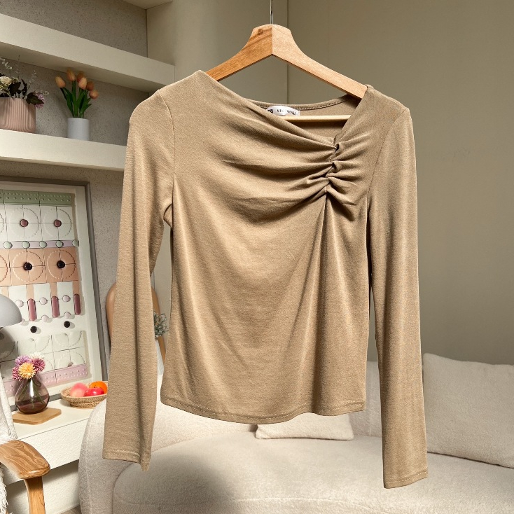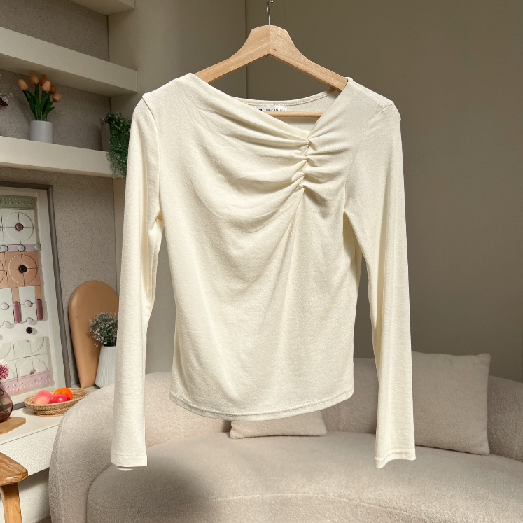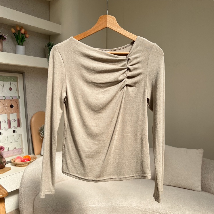 ดีเทลย่นตรงอก เพิ่มมิติและดีไซน์ให้เสื้อไม่เรียบจนเกินไป