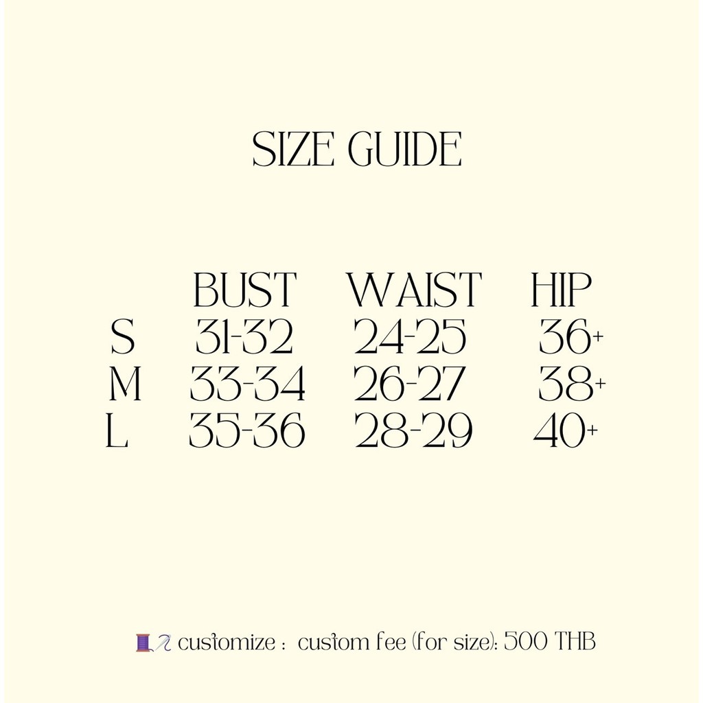 Size guide หรือ ไซส์ที่ระบุเป็นไซส์แนะนำสำหรับสัดส่วนผู้ใส่ ไม่ใช่ขนาดของสินค้านะคะ