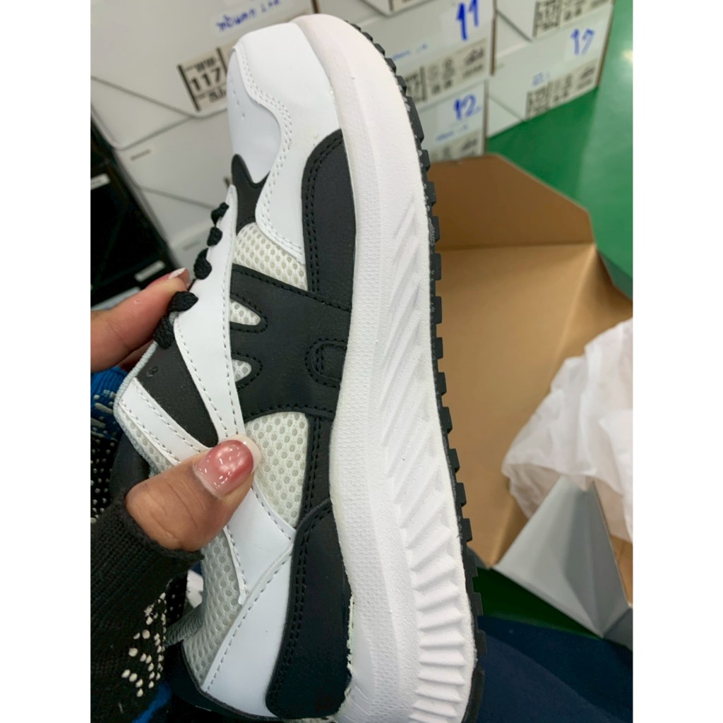 - พื้นรองเท้าเป็นยางสังเคราะห์ ช่วยในการกันลื้นจากน้ำและน้ำมัน
