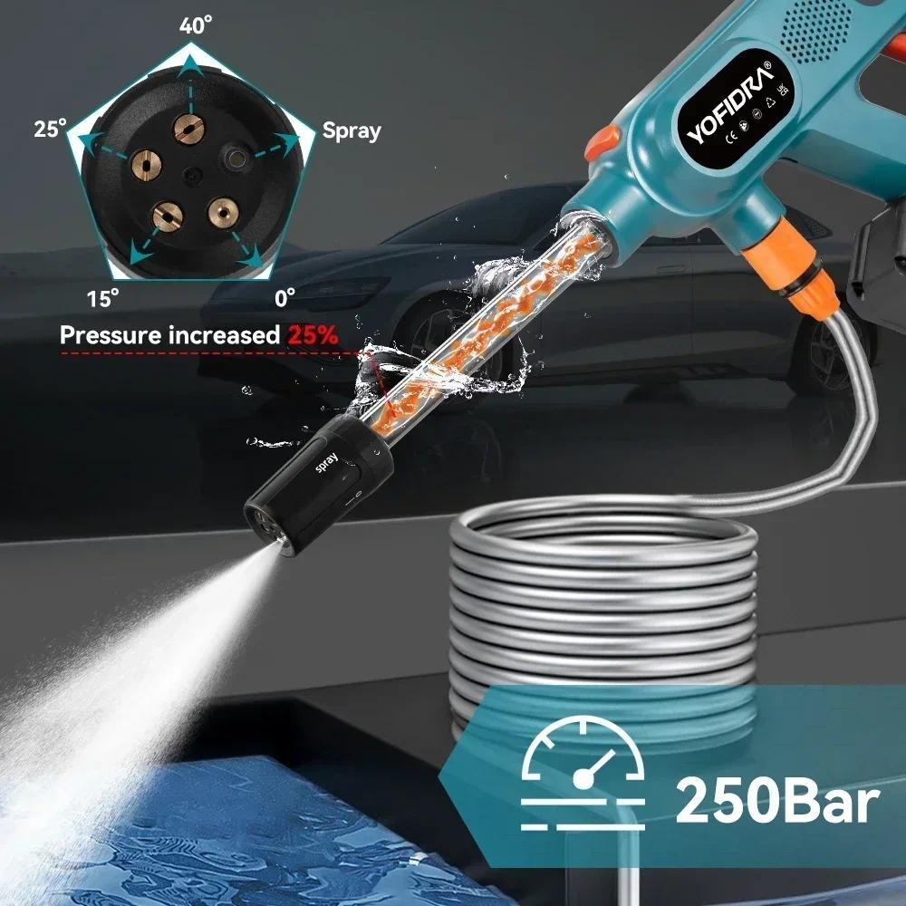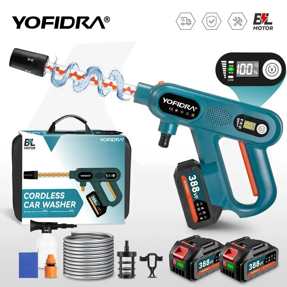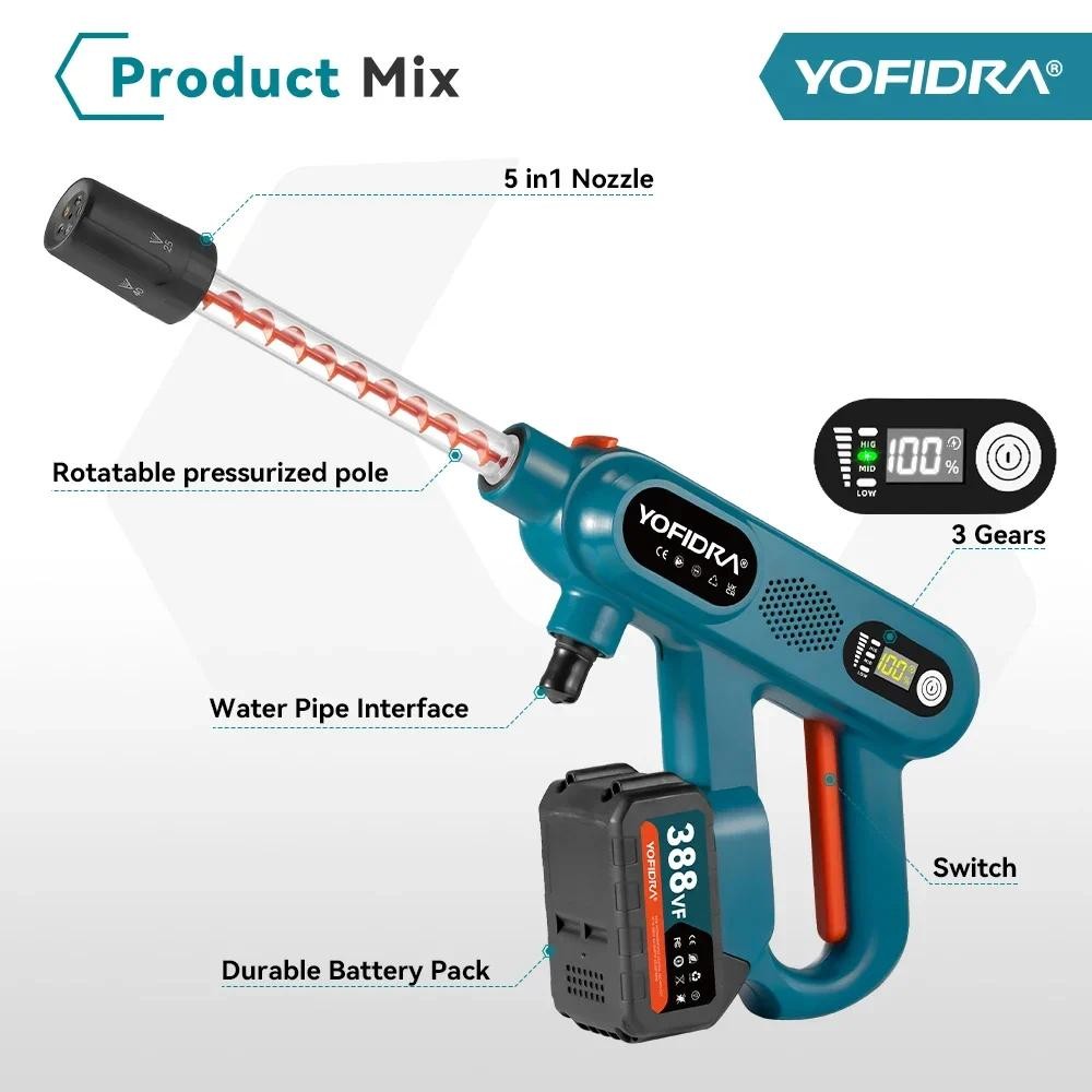 Yofidra 250Bar เครื่องฉีดน้ำแรงดันสูงแบบไม่มีแปรง 3 เกียร์ 5 IN 1 เครื่องทำความสะอาดไฟฟ้าไร้สายรถยนต์แรงดันสูงแบบใช้มือถือสวนเครื่องซักผ้าบ้านปืนฉีดน้ำสำหรับแบตเตอรี่ Makita 18V