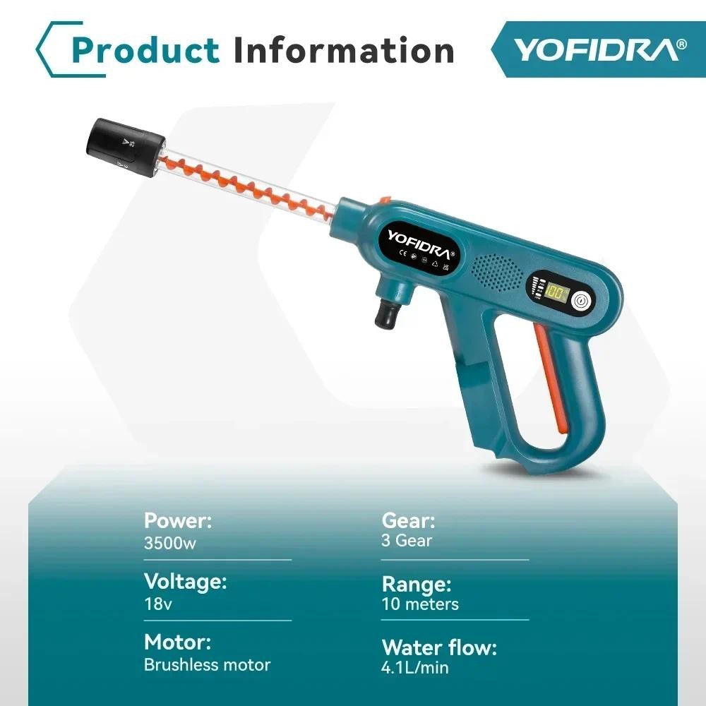 Yofidra ปืนฉีดน้ําแรงดันสูงไฟฟ้าไร้แปรงถ่าน 250Bar 3 Gear Power Home Car Washing Water Spray Gun สําหรับ Makita 18V แบตเตอรี่
