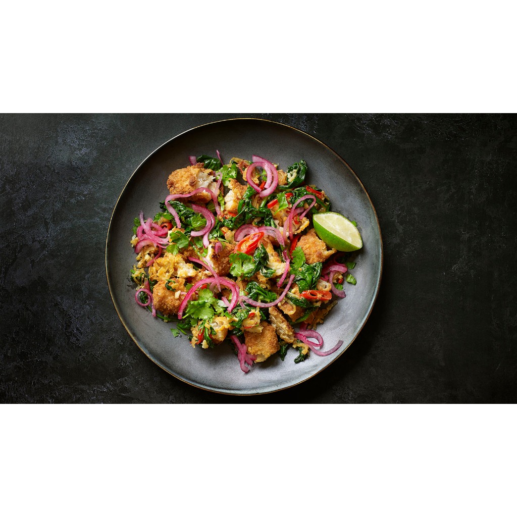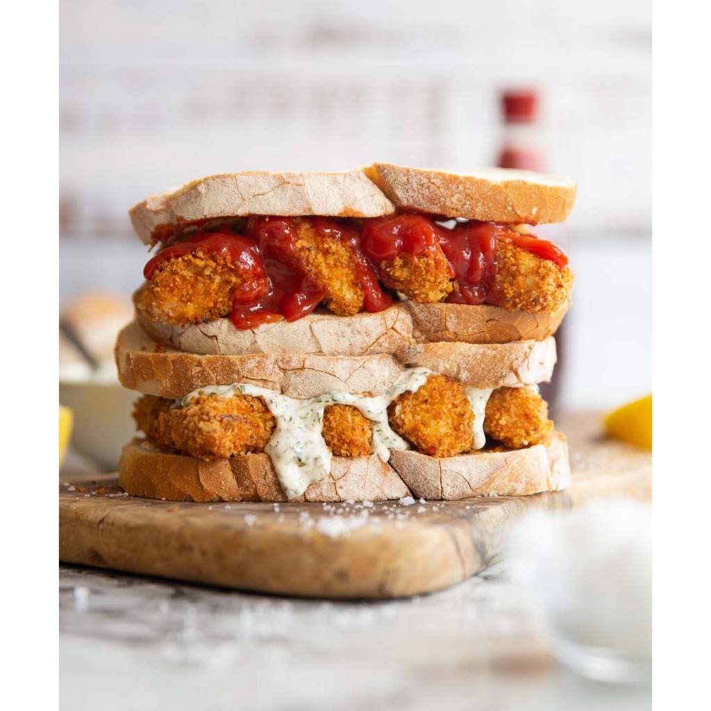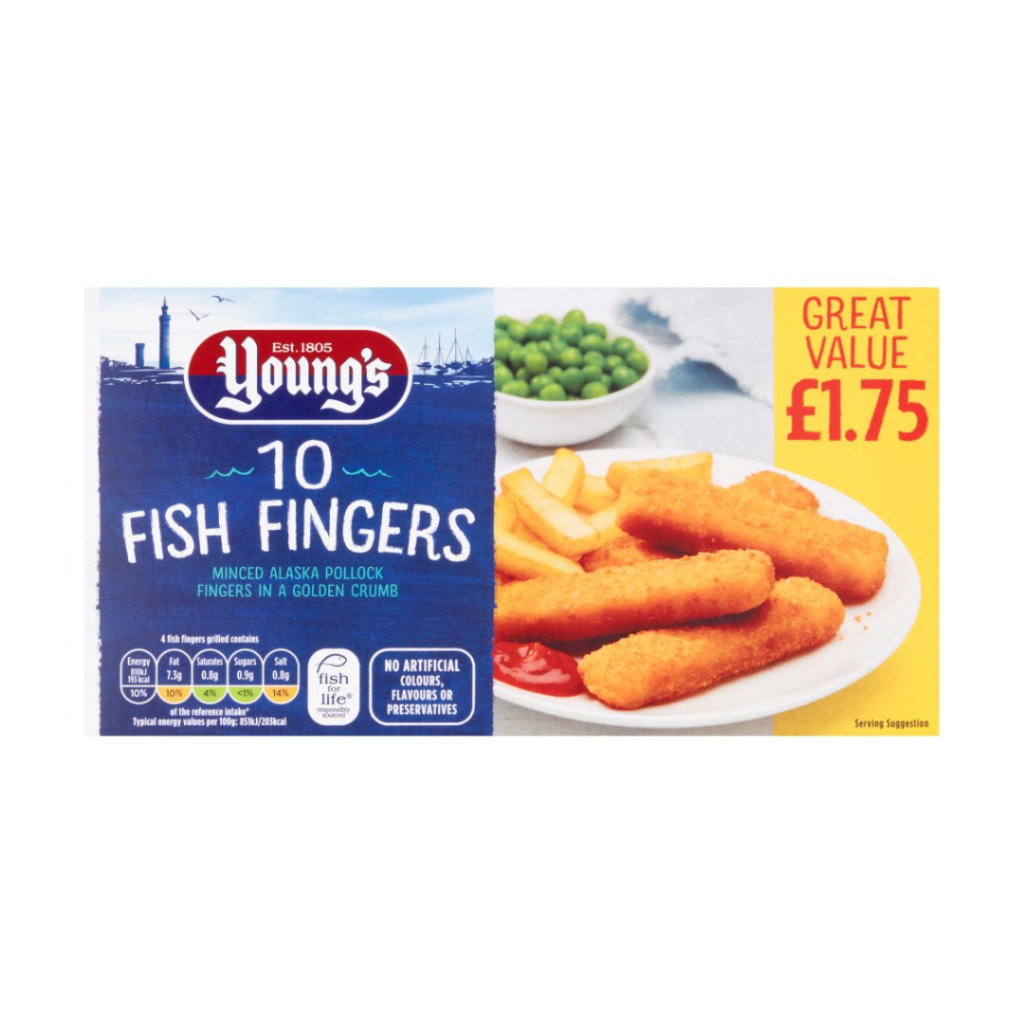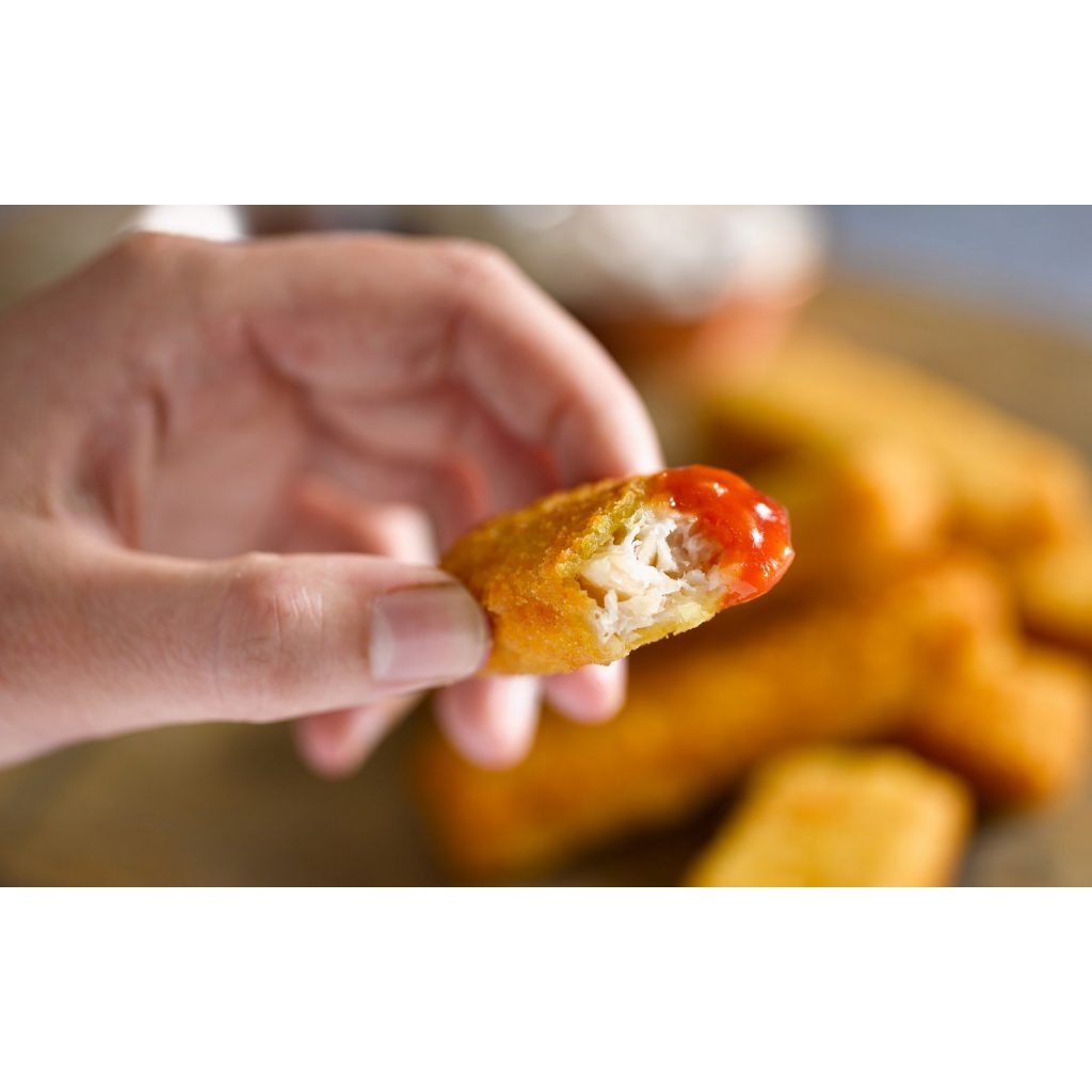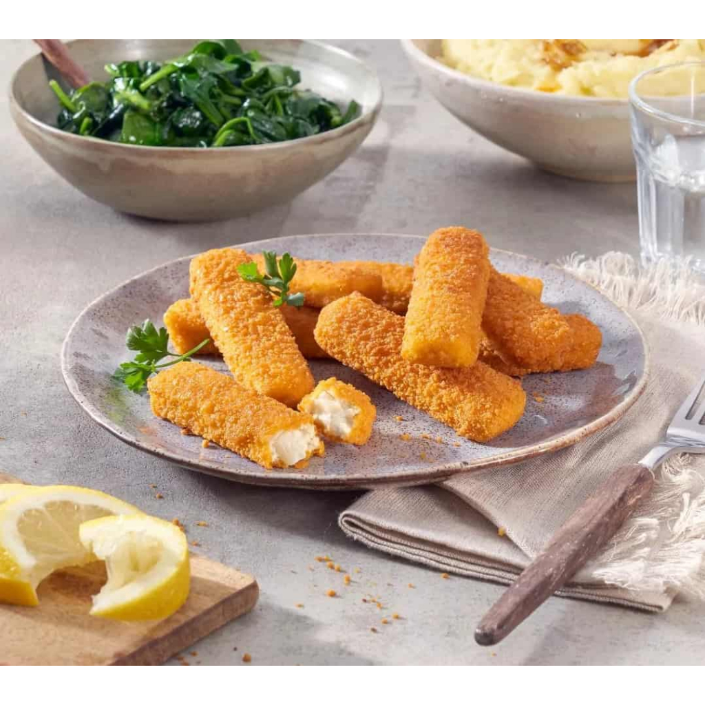 ● Ingredients : Cod (Fish) (58%), Wheat Flour (Wheat Flour, Calcium Carbonate, Iron, Niacin (B3), Thiamin (B1)], Rapeseed Oil, Water, Potato Starch, Wheat Starch, Salt, Yeast, Colours: Capsanthin, Curcumin, Turmeric