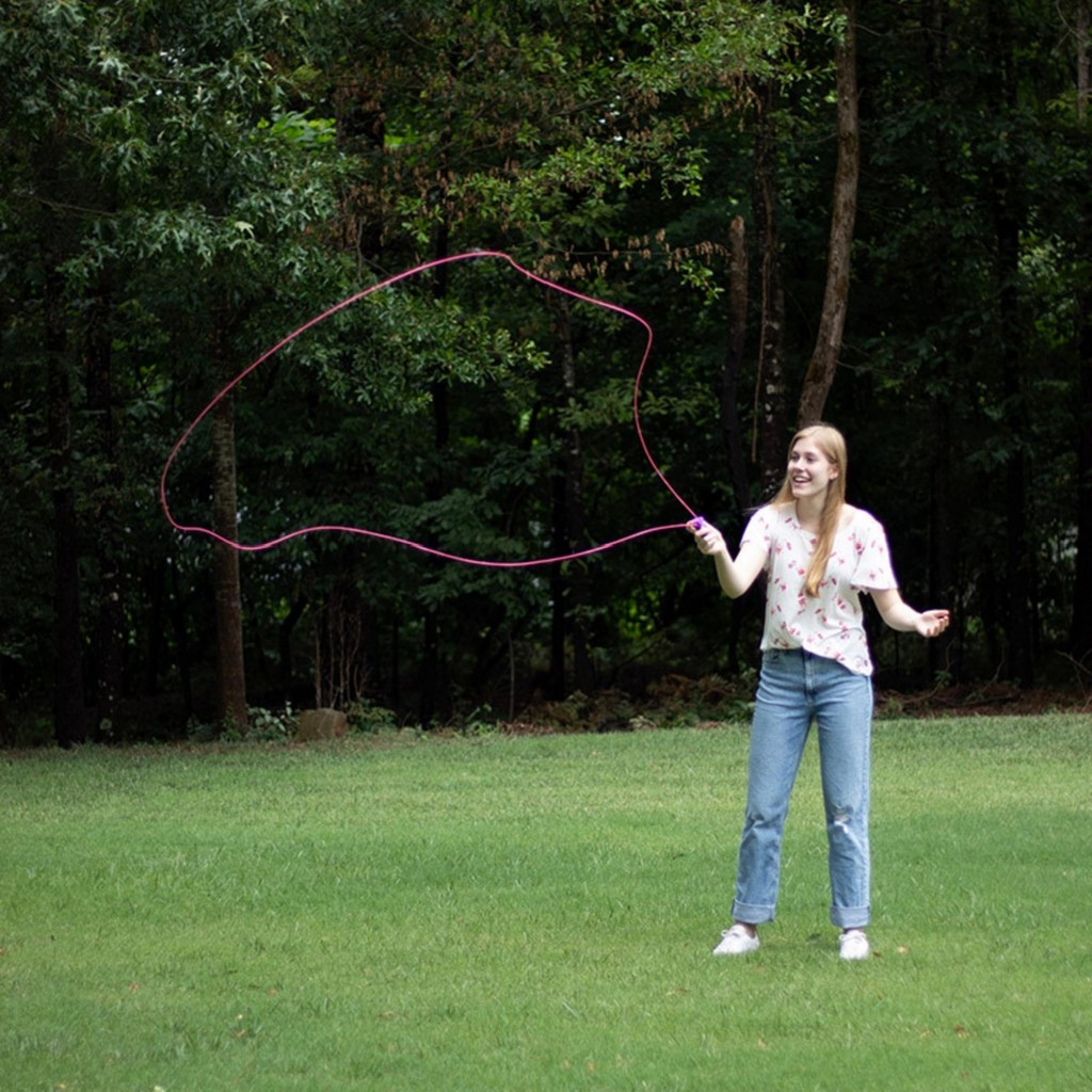 Tips for movement: When turning on the power, guide the lower half of the loop with one hand to reduce tangling. Be cautious as the upper half of the loop touches the lower half, as this can easily lead to tangles. Initially, sway it side to side, and once you're comfortable, move it in any direction you like.