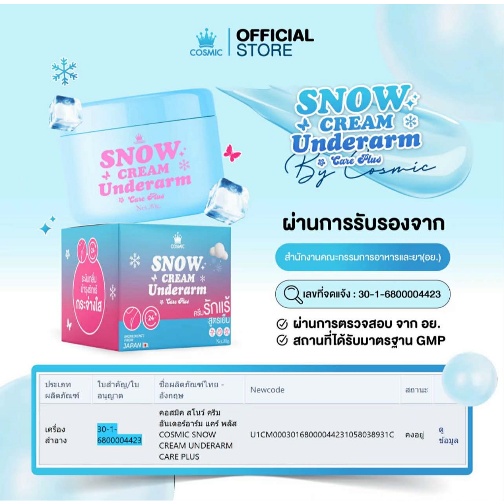 (📍กดในไลฟ์ถูกกว่า📍) New SNOW CREAM UNDERARM CARE PLUS ครีมทารักแร้ ครีมเต่าเย็น รักแร้คอสมิค🌸