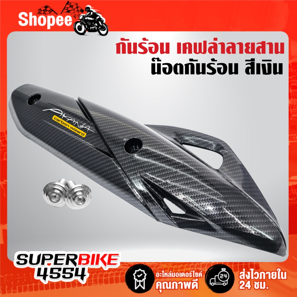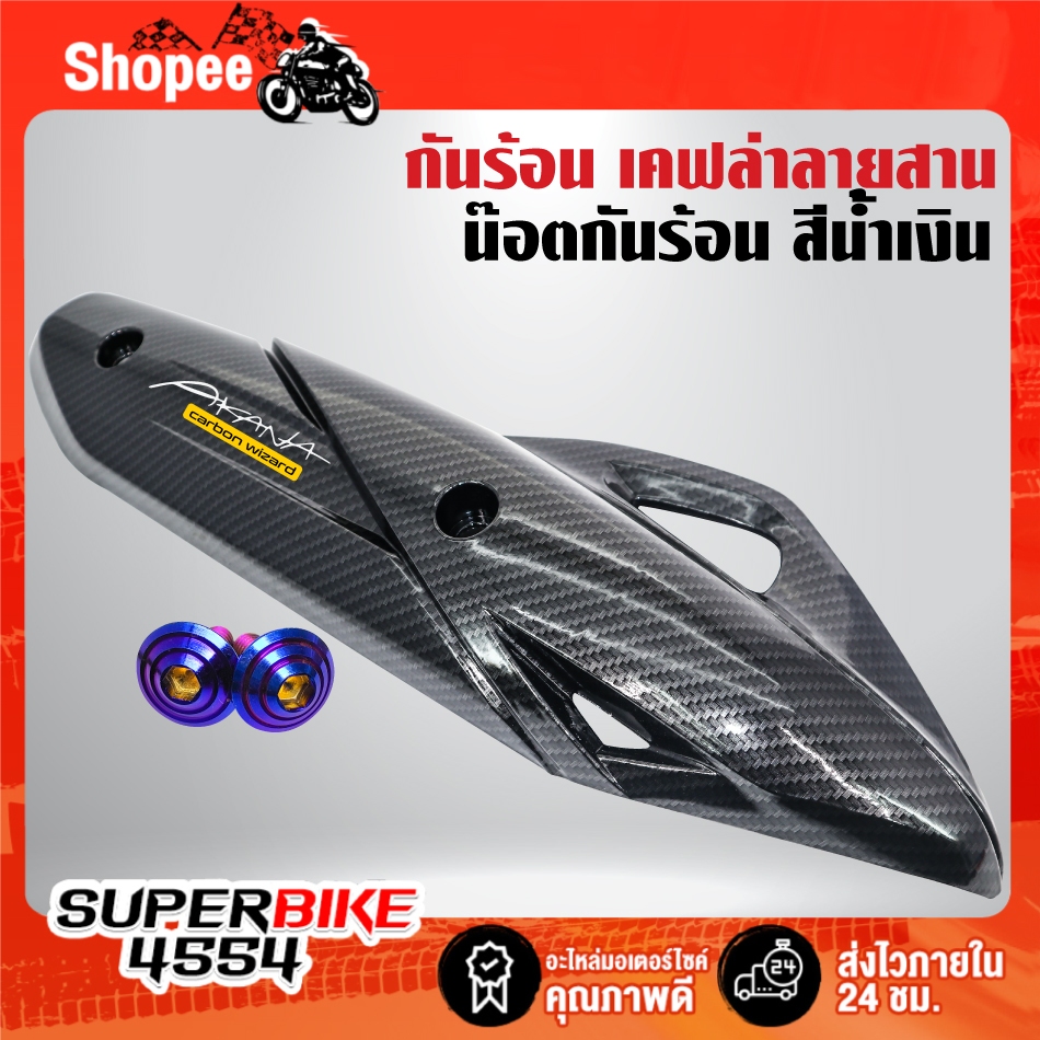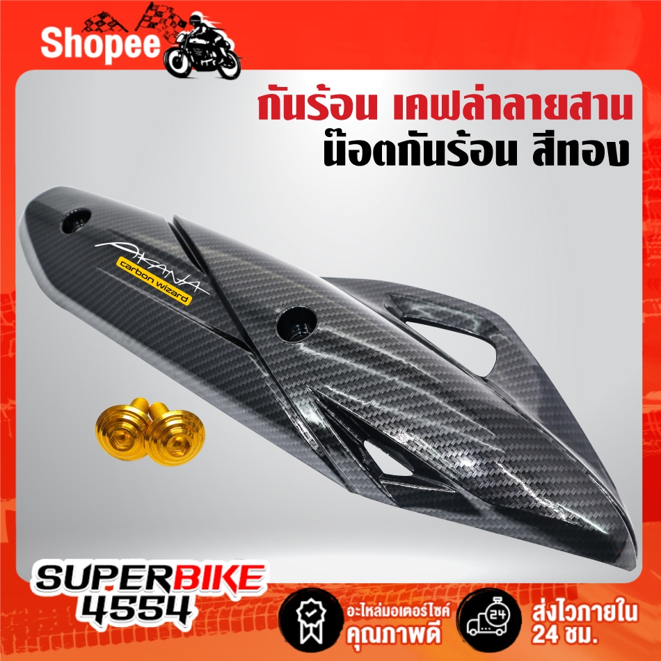 กันร้อน เคฟล่าลายสาน + น๊อตกันร้อน 2 ตัว สำหรับ PCX-150 ปี2018-2020 (ใส่ปี 21-25 ไม่ได้) +สติกเกอร์ AK