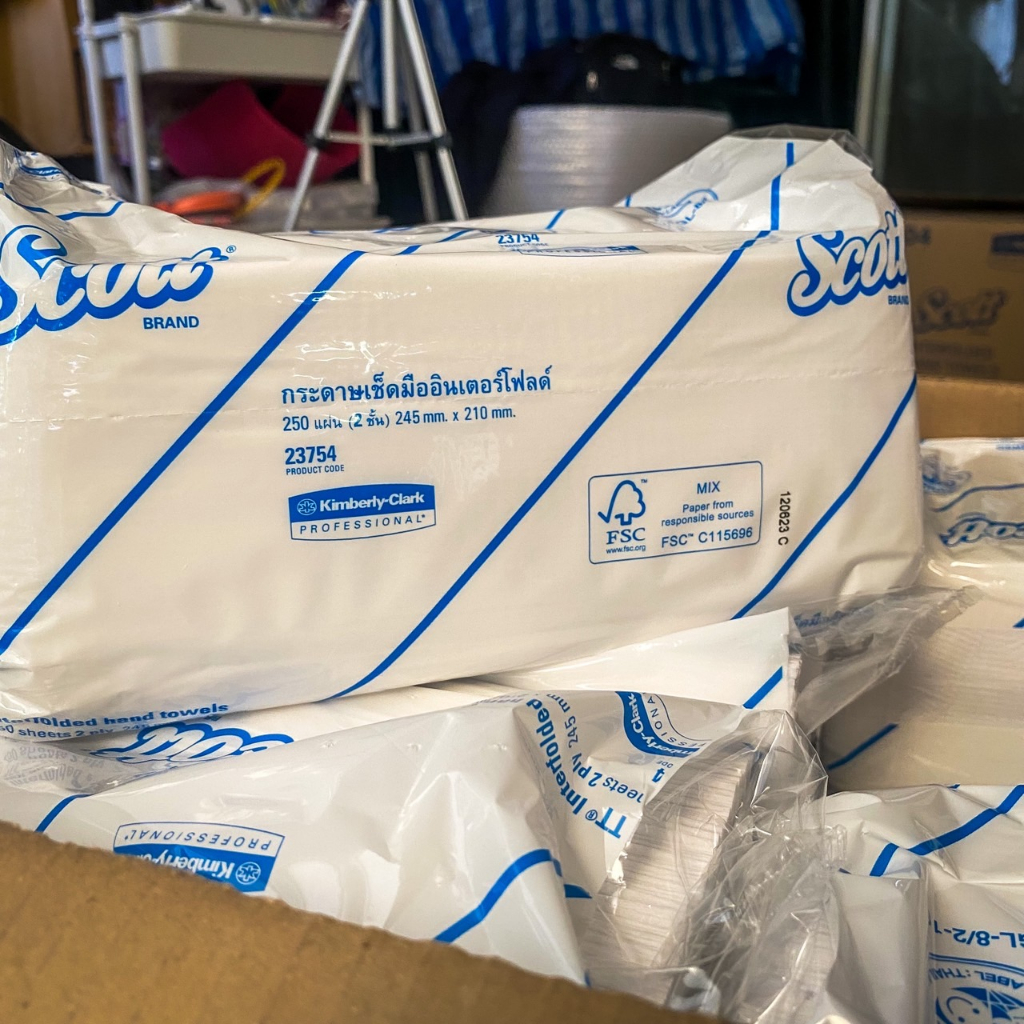 กระดาษทิชชู่ Scott กระดาษเช็ดมือ Scott Interfold Hand Towels 250 แผ่น/แพ็ค รุ่น23754 มีปลายทาง 6แพ็ค