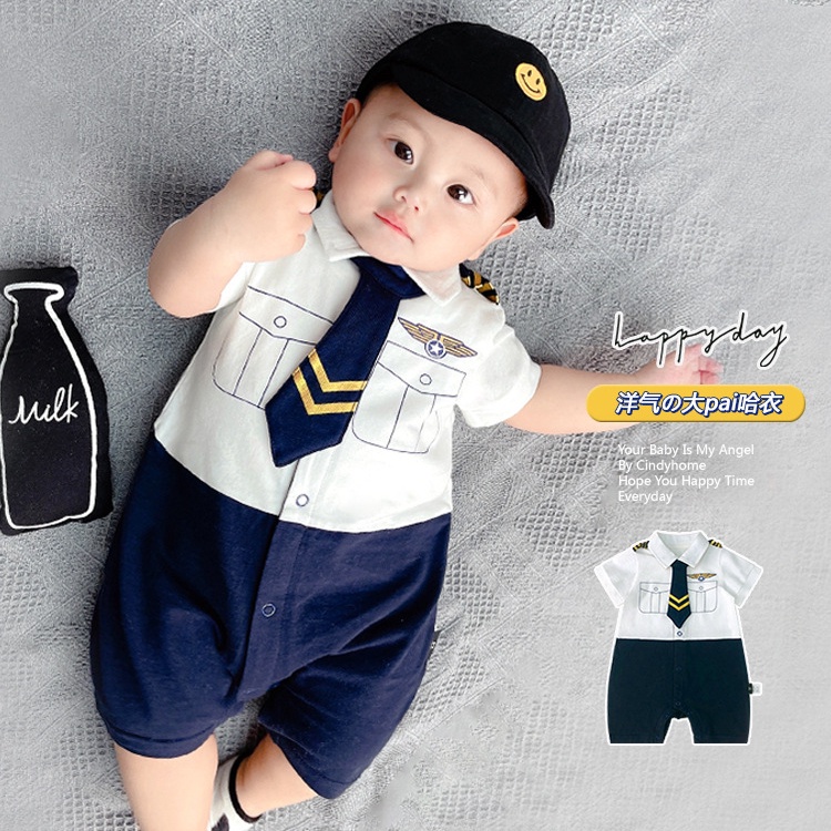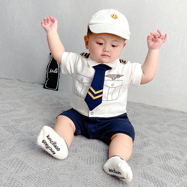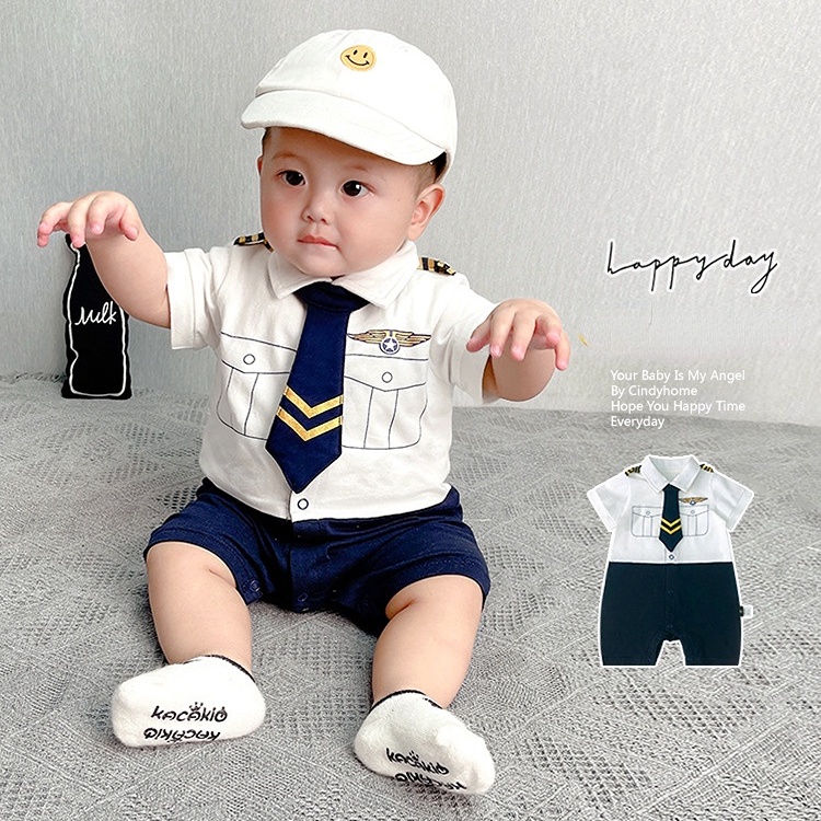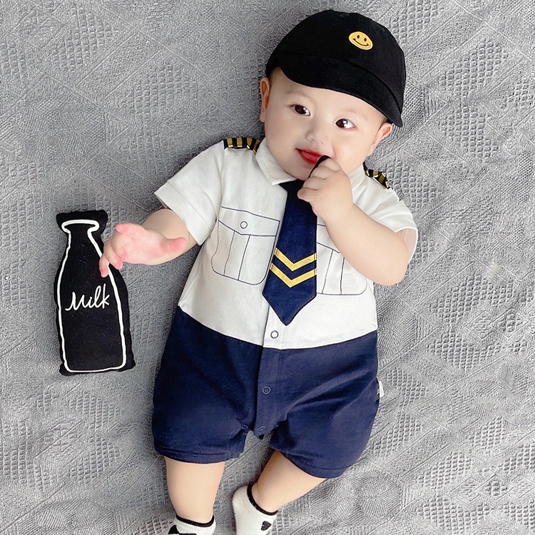 ชุดบอดี้สูทรอมเปอร์ ผ้าฝ้าย แบบบาง ลายกัปตัน แฟชั่นฤดูร้อน สําหรับเด็กทารกแรกเกิด