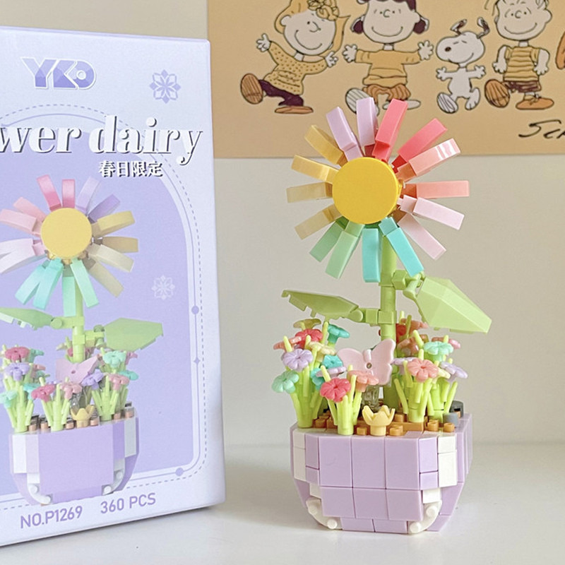 ตัวต่อดอกไม้ ของเล่นบล็อกตัว ตช่อดอกไม้ ฝึกสมาธิ DIY ทานตะวัน ของขวัญวันวาเลนไทน์ ของขวัญรับปริญญา ของขวัญสำหรับสาวๆ