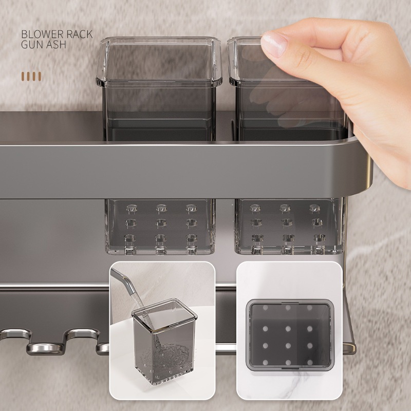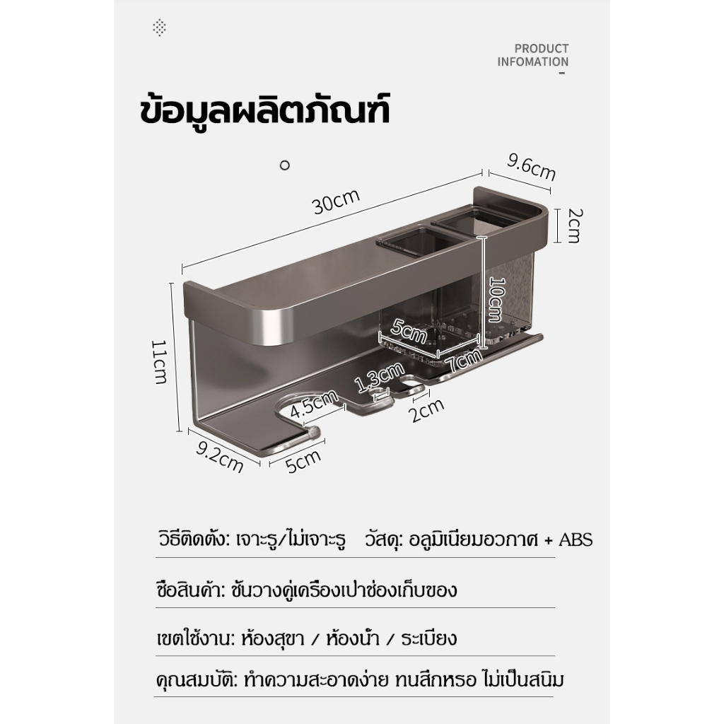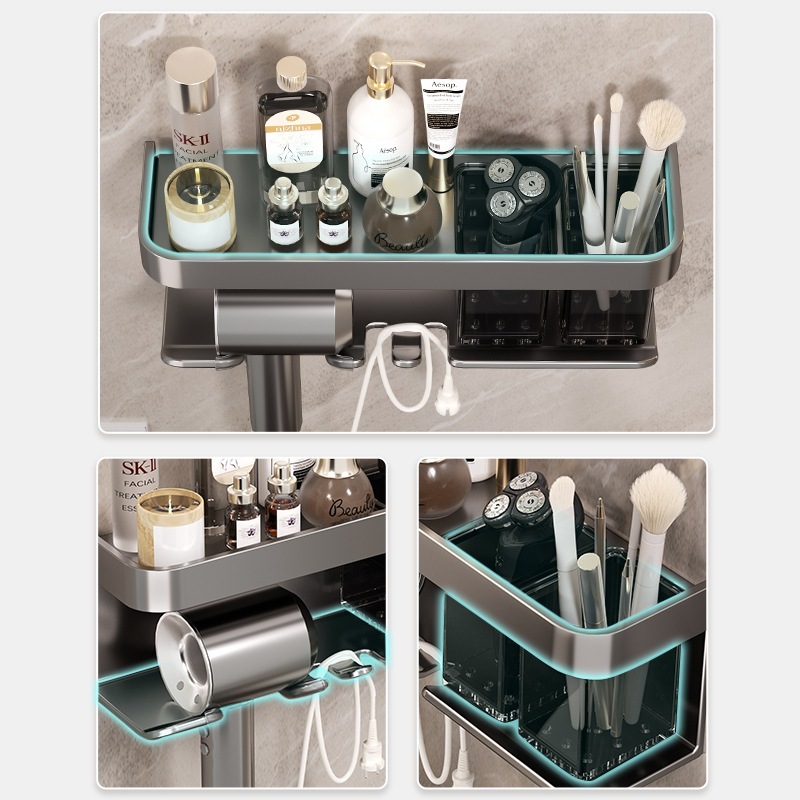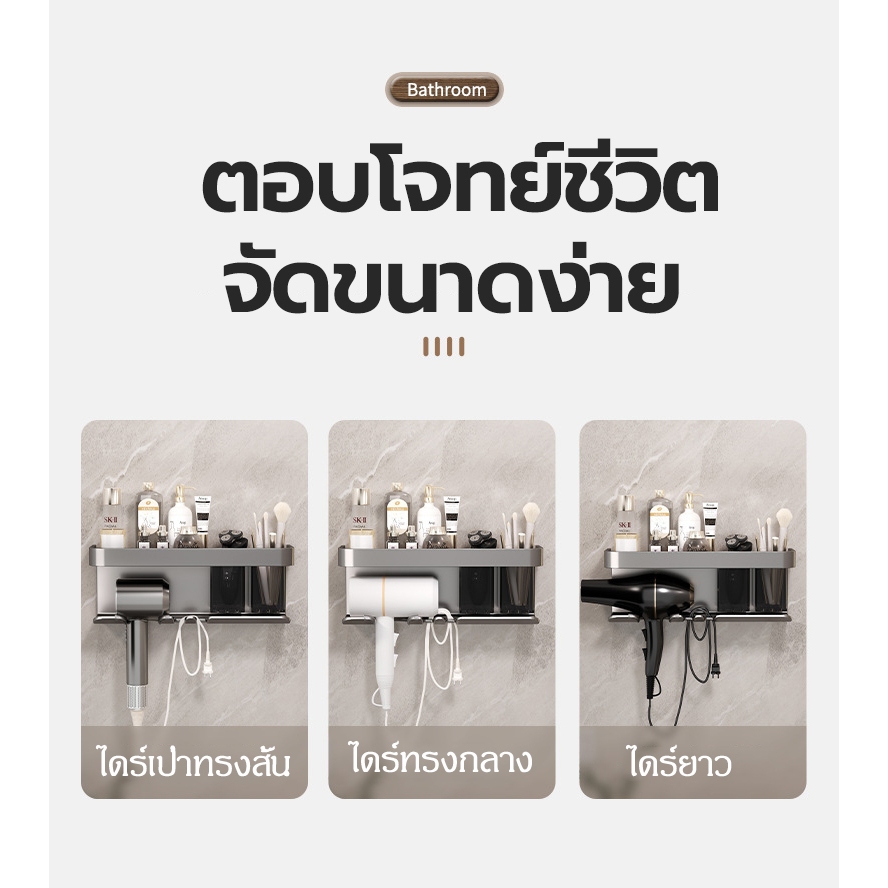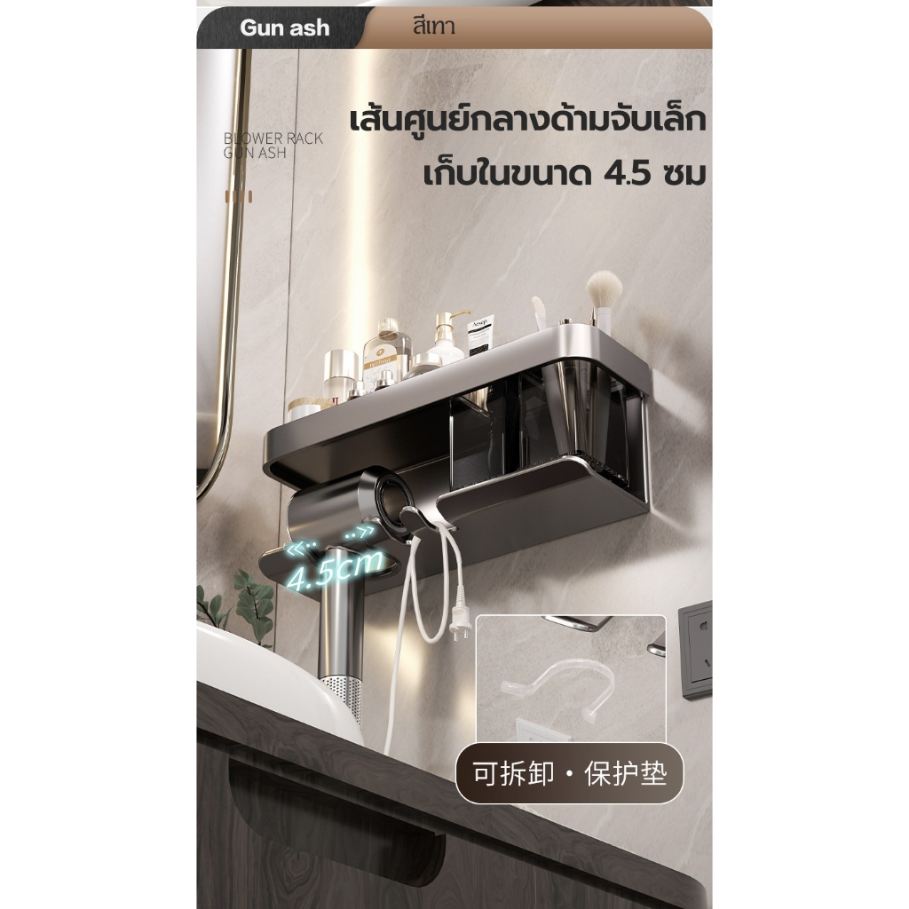 [พร้อมส่ง] ที่วางไดร์เป่าผม ที่แขวนไดร์เป่าผม ชั้นวางไดร์เป่าผม ไม่ต้องเจาะผนัง มีช่องเก็บสายไฟ วัสดุอะลูมิเนียม