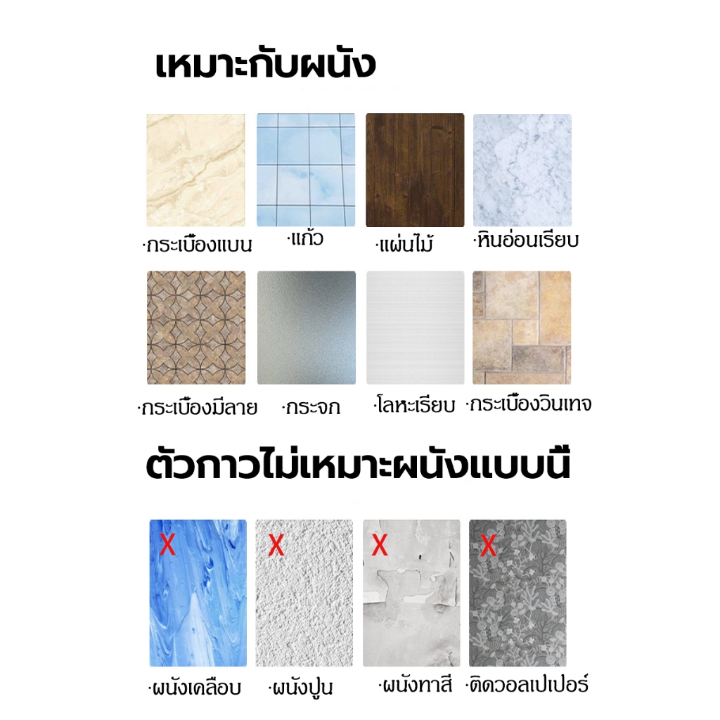 1.ไม่มีวิธีการเจาะติดตั้งง่ายและสะดวกดูสวยงามไม่ทำร้ายผนังกันน้ำและรับน้ำหนักได้ดี