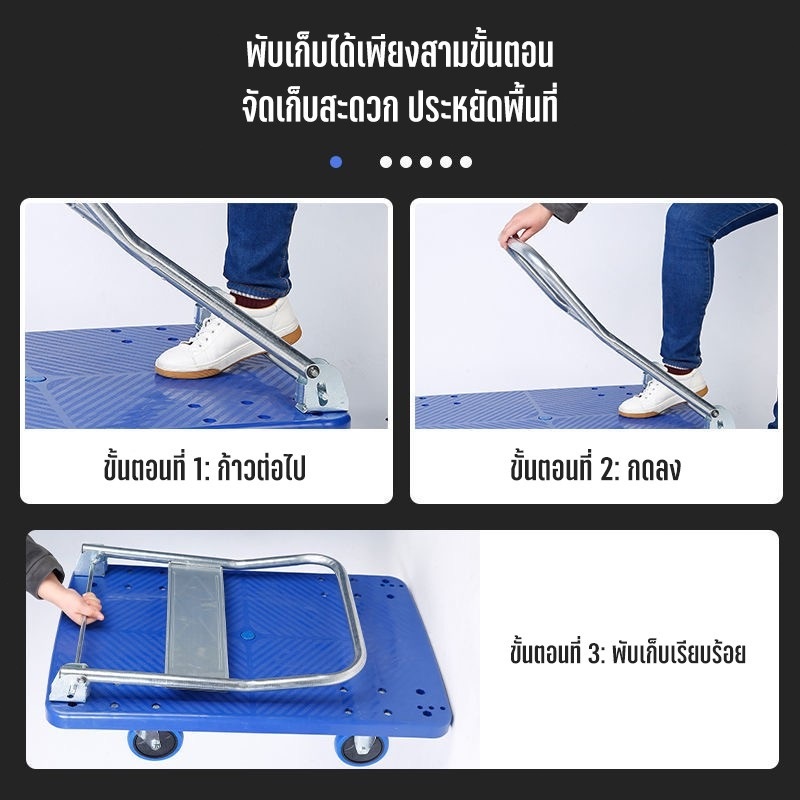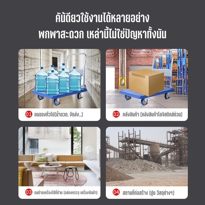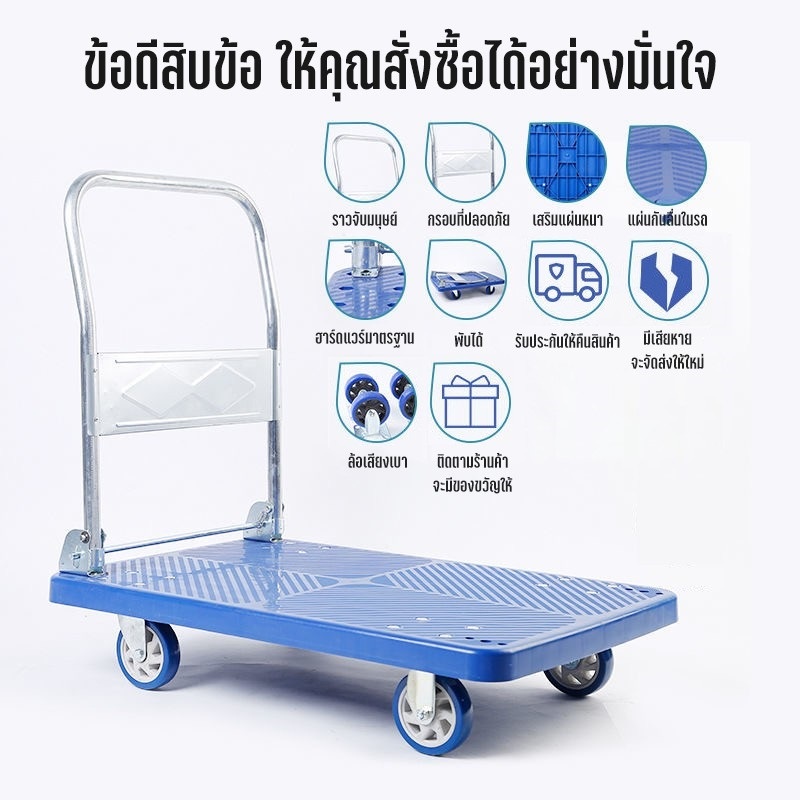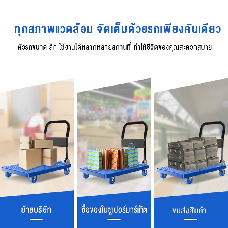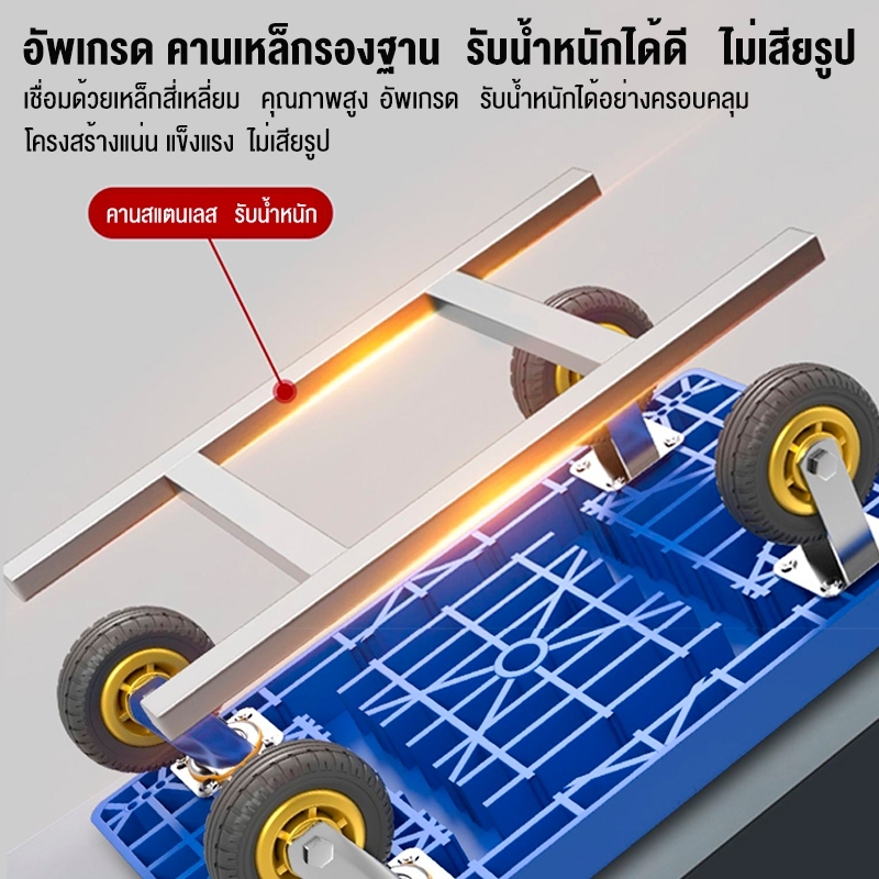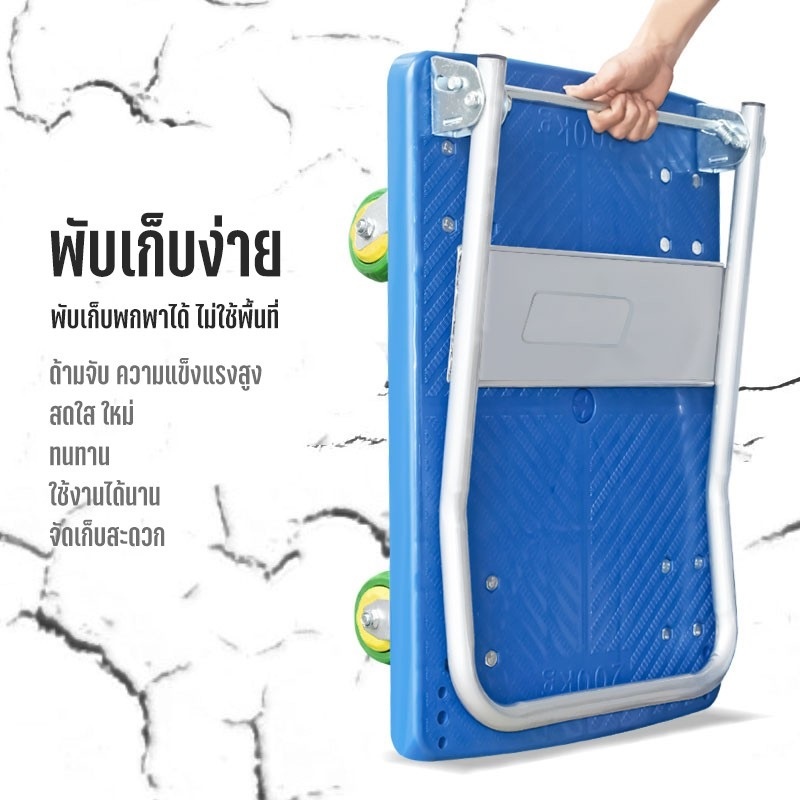 รายละเอียดสินค้า【รับประกัน 10 ปี】 รถเข็นของ 4 ล้อ ล้อยาง รองรับน้ำหนัก 1200กก รถเข็นของพับได้ พื้นพลาสติก ABSอย่างหนา รถเข็นอเนกประสงค์ Carts