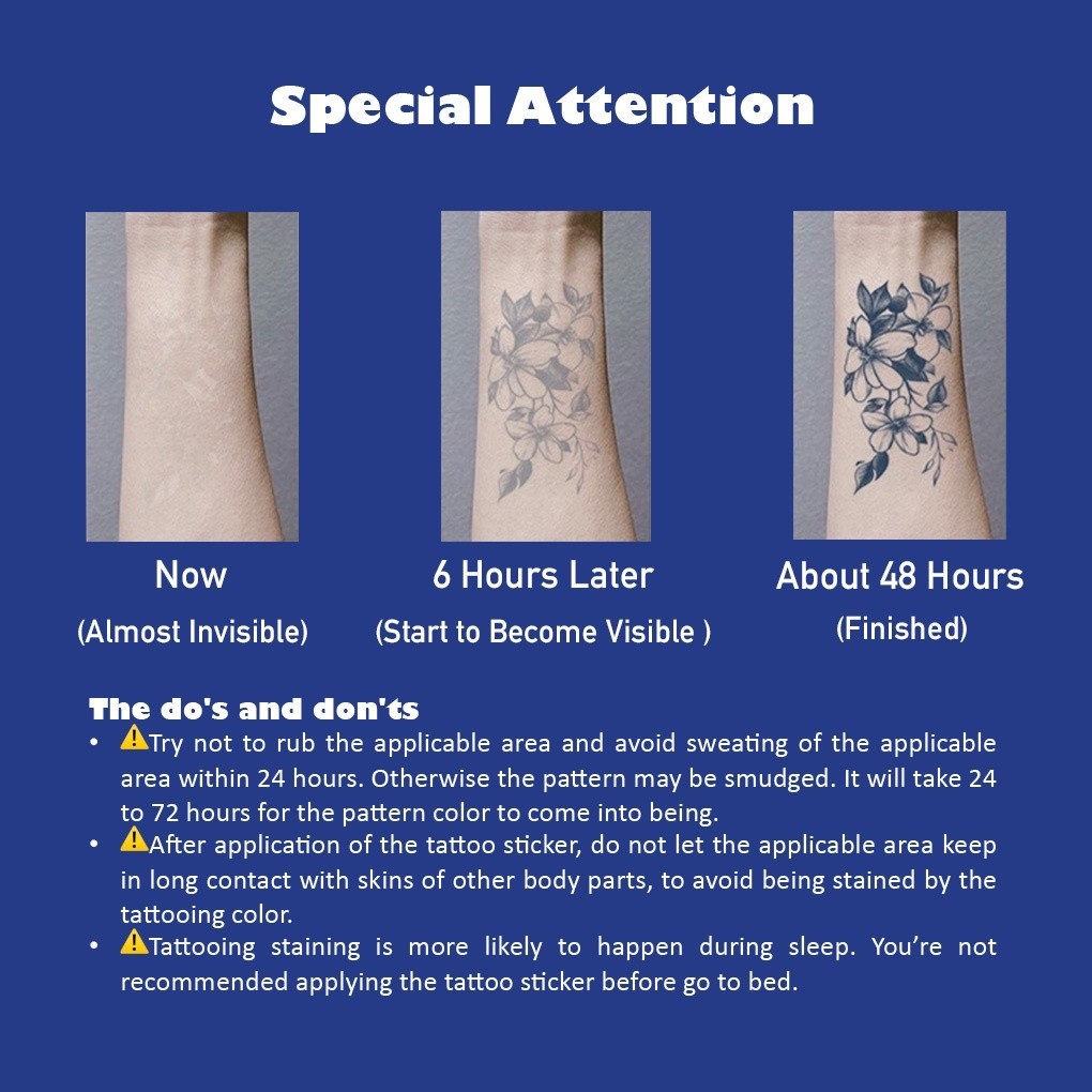 รอยสักบนรอยสักคุณจะสังเกตเห็นว่ารอยสักเป็นสีในรูปแบบ รอยสักมีลักษณะเหมือนครั้งแรกที่ทาลงบนผิวของคุณ - แต่ไม่ต้องกังวล! หลังจาก 24-36 ชั่วโมงรอยสักของคุณจะกลายเป็นสีเหมือนรอยสัก - มันคือส่วนหนึ่งของรอยสักวิเศษทั้งหมด!