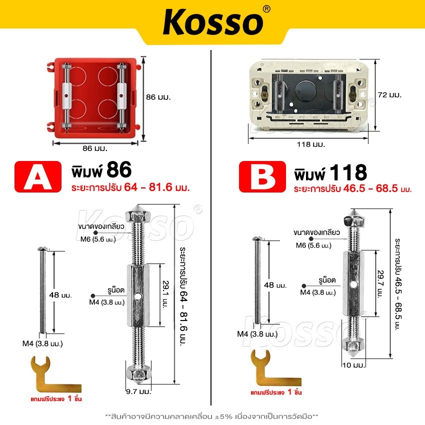 ส่งด่วน Kosso 10ชิ้น!! ชุดสวิทซ์ติดผนัง (พิมพ์ 86,118) กล่องสวิทช์ซ็อกเก็ตติดผนัง ซ็อกเก็ตเทปคาสเซ็ต ติดผนัง
