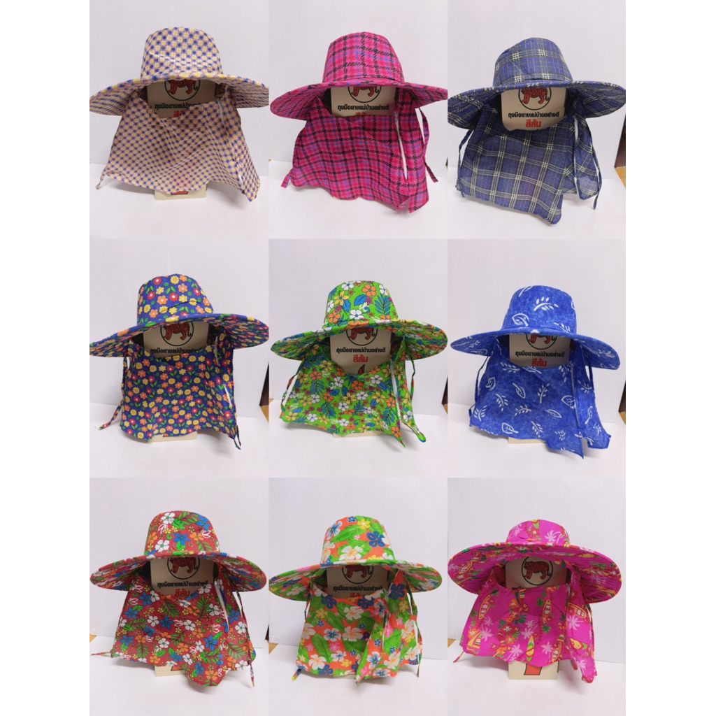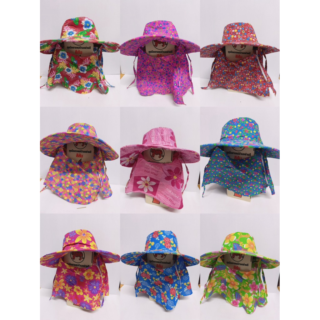 🔥หมวกคลุมหน้าปีกโฟม🔥ลายดอกไม้ สก๊อต ปีกกว้าง35cm หมวกคลุมหน้ากันแดด กันยูวี หมวกทำงาน ทำไร่ ทำสวน ทำนา กันแดดได้ดีเยี่ยม