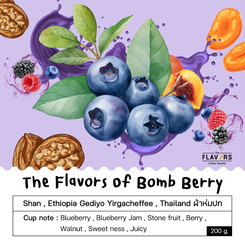 เมล็ดกาแฟเบลนด์คั่วกลางอ่อน 'บอมบ์เบอร์รี่' ขนาด 100-200 กรัม บลูเบอร์รี่ เปรี้ยวอมหวาน หอมฉ่ำในปาก