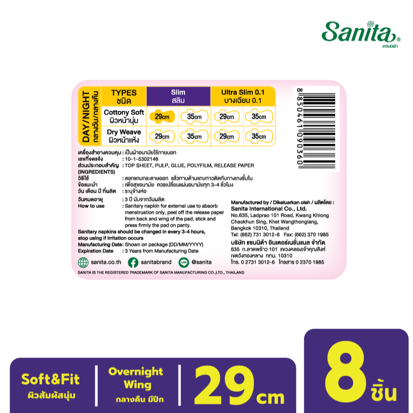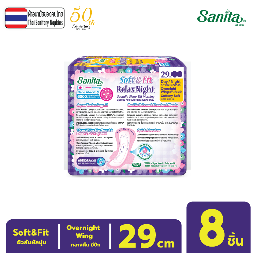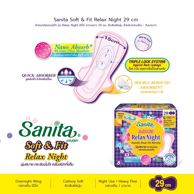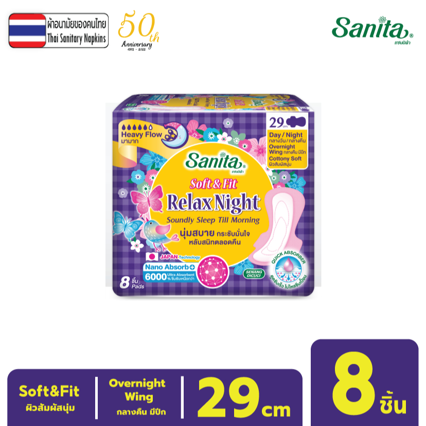 #Sanita #Soft & #Fit #Relax #Night / #ผ้าอนามัย #แซนนิต้า #ซอฟท์&ฟิต #กลางคืน #มีปีก #ผิวสัมผัสนุ่ม 29ซม. 8 ชิ้น