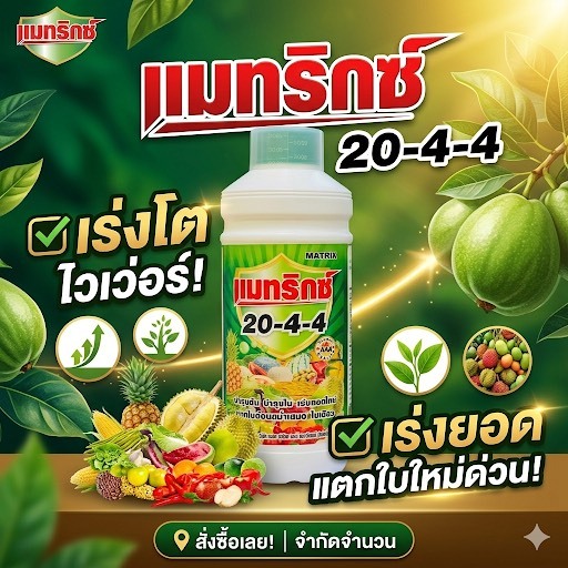แมทริกซ์ ปุ๋ยน้ำ20-4-4 เร่งแตกใบใหม่ ใบหนา ใบเขียว แตกยอดไว บำรุงต้น ทุเรียน มะม่วง พืชผัก ชนิดน้ำ