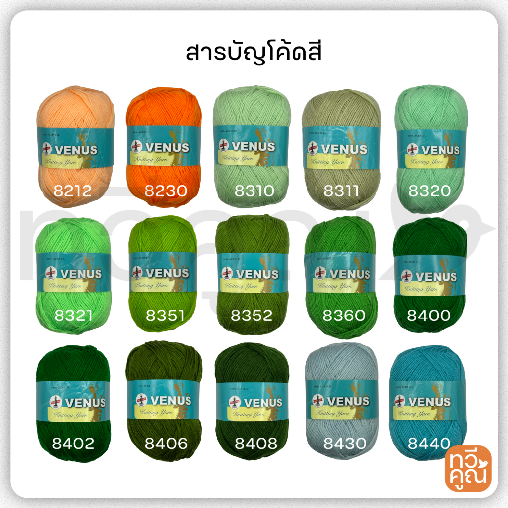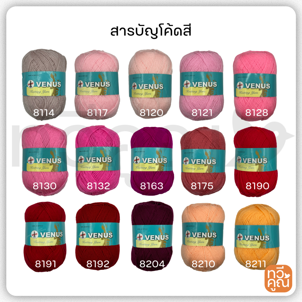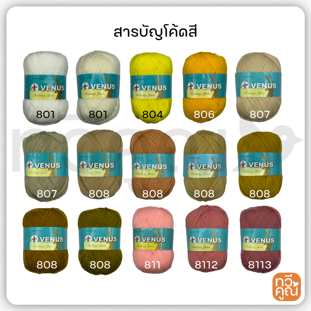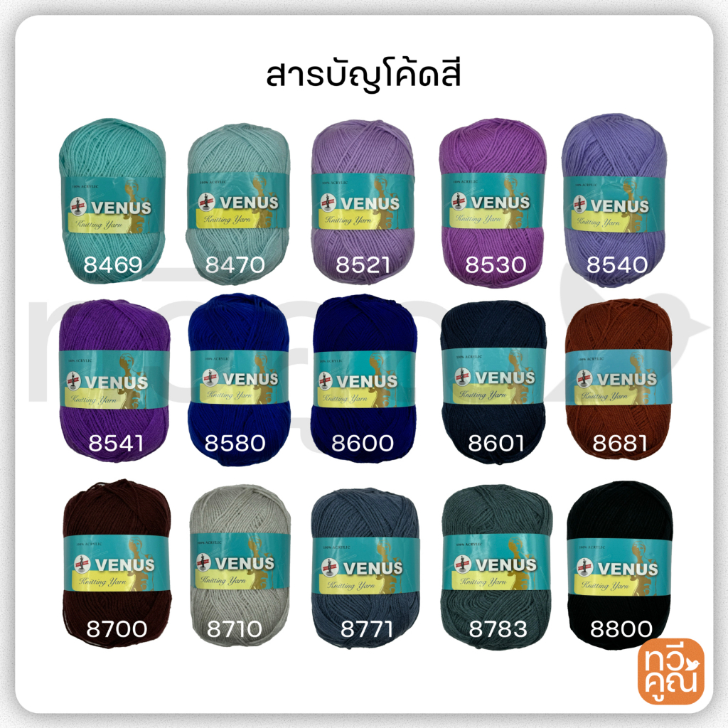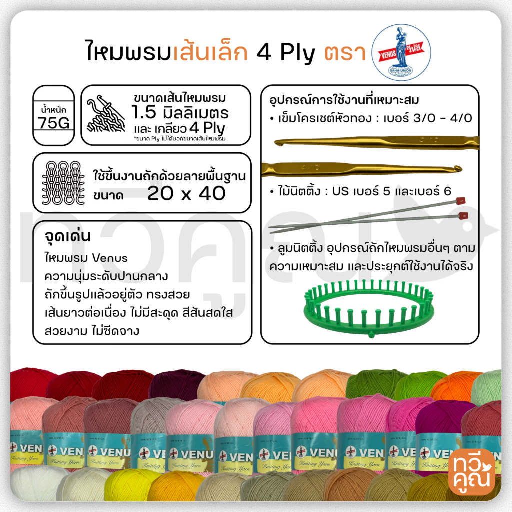 ไหมพรมเส้นเล็ก ตรา Venus สีพื้น ขนาดเส้น 4 ply ไหมพรมอะคริลิค สีสวย ถักง่าย ตรา วีนัส ไหมพรม acrylic