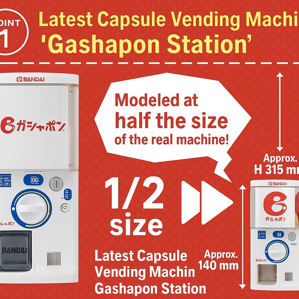 The latest model in Bandai's official “Gashapon hine” series, recreating a real capsule vending machine at approximately half size!