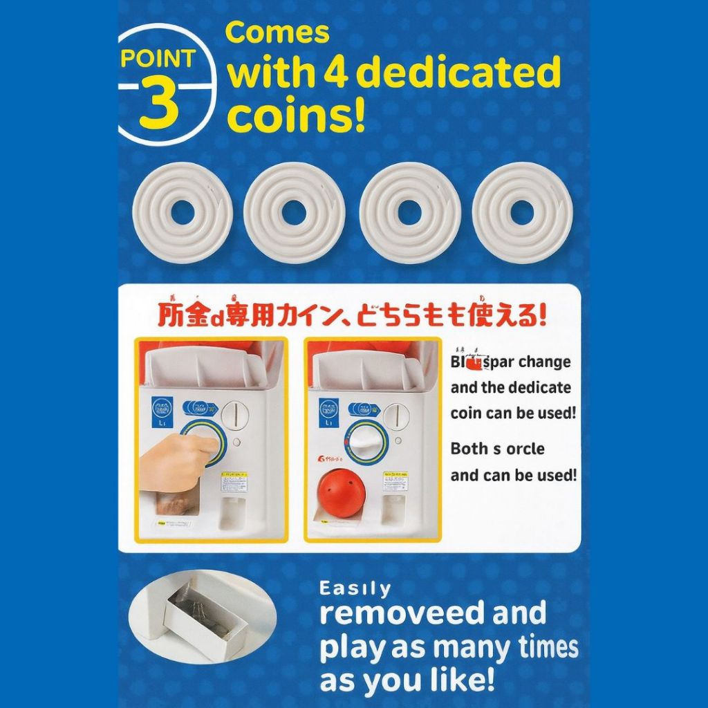 Fill the capsules with small items and insert them into the machine to enjoy authentic Gashapon play using real coins or the included special coins!