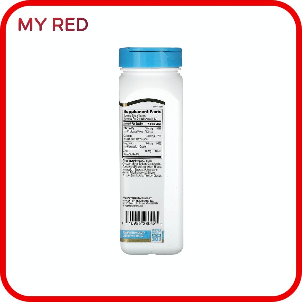 21st Century, Calcium Magnesium Zinc + D3, 250 Tablets