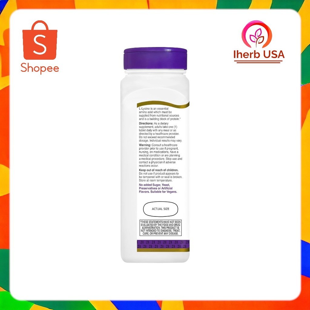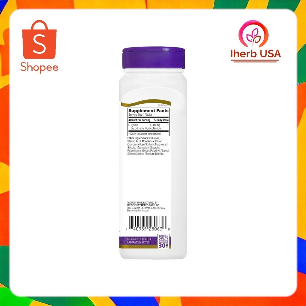ตัวเลือกที่เลือก 21st Century, L-Lysine, 1,000 mg, 90 Tablets ฿267