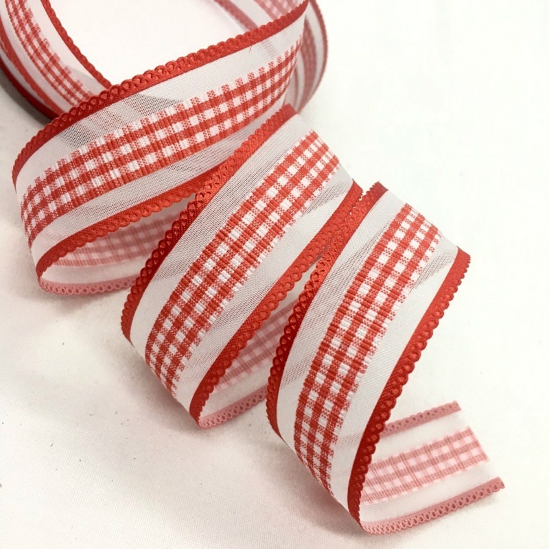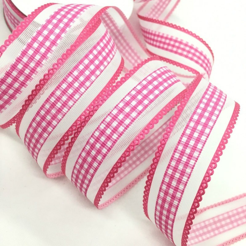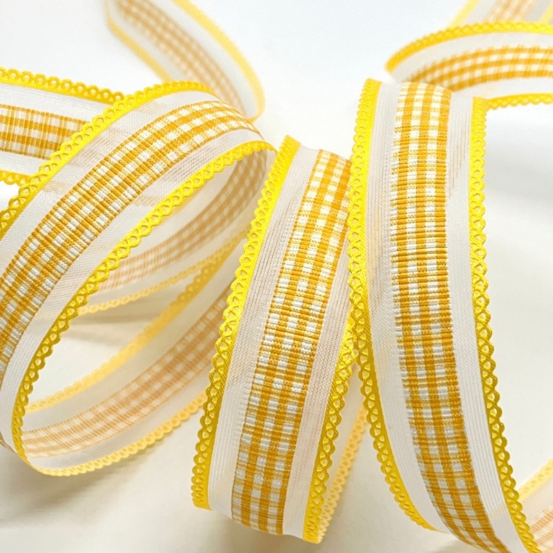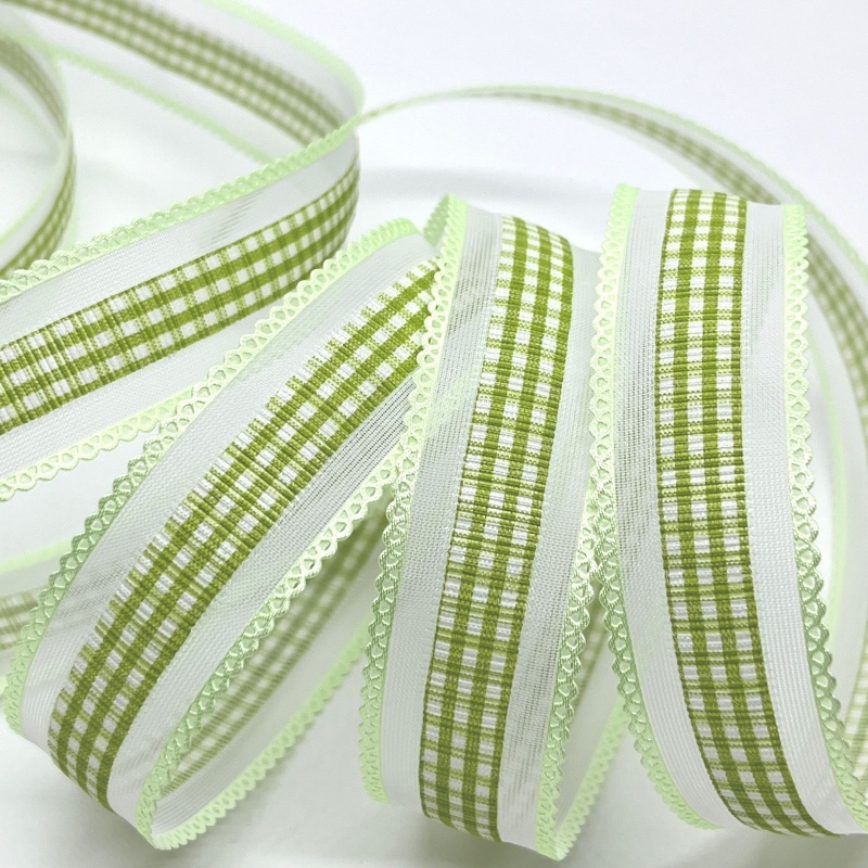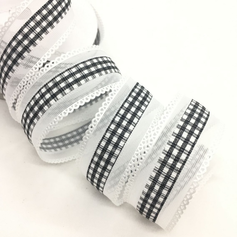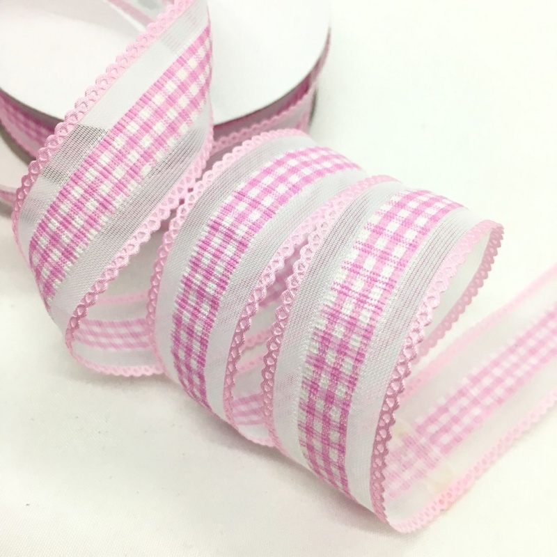 2.5cm 4.5meters Gingham Tartan Embossed Ribbon For Handmade DIY Craft Bows Easter Wedding Christmas Deco Gift Floral Packing