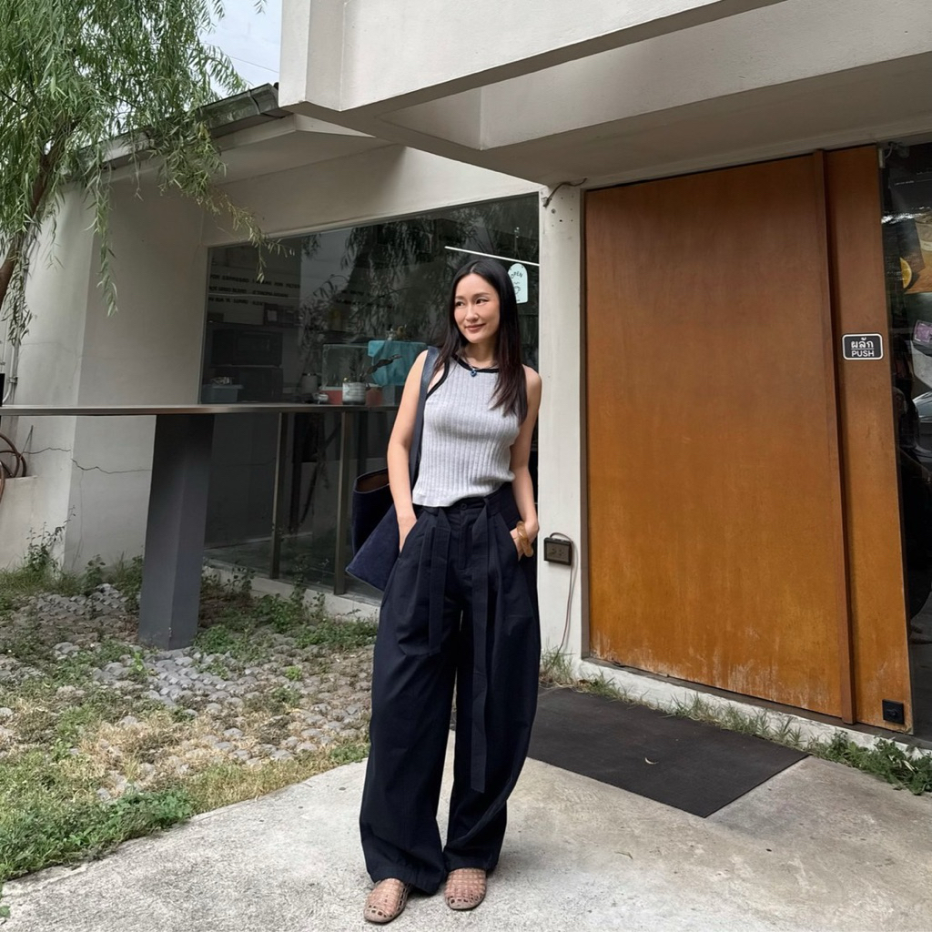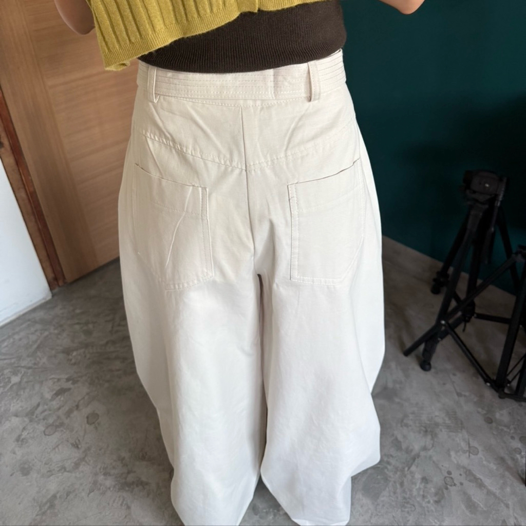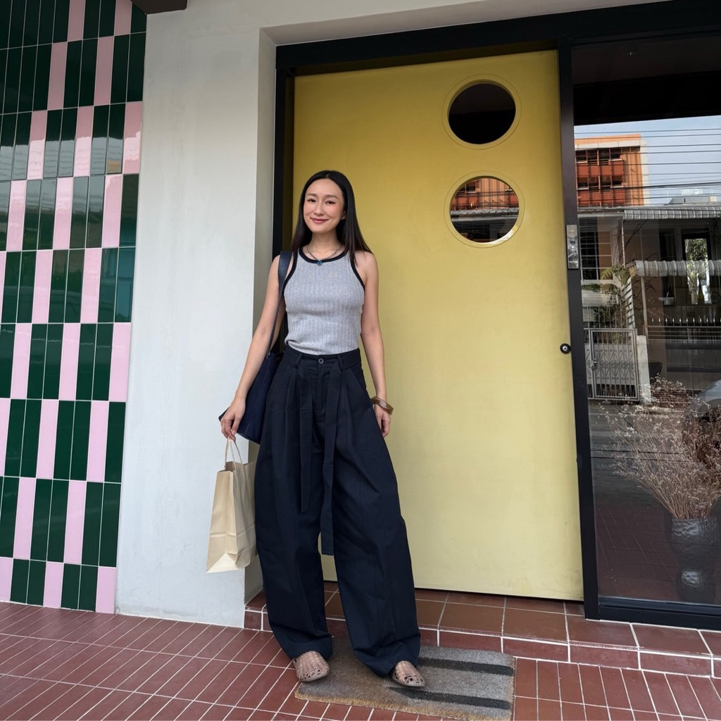 กางเกงทำงานทรงขากระบอกกลาง มีหูใส่เข็มขัด ตะขอหน้า เอวสูง ผ้…