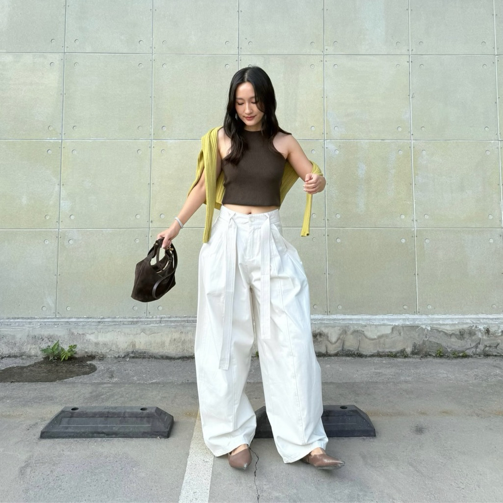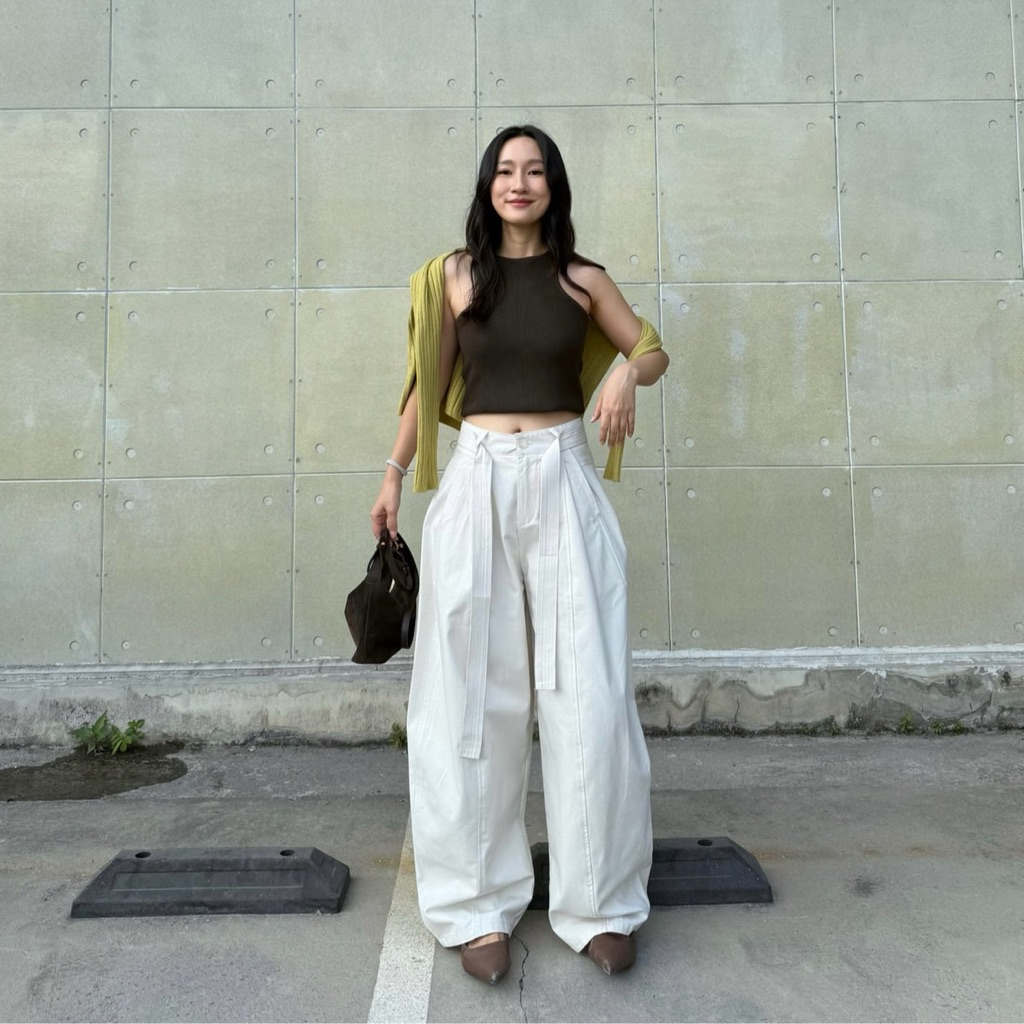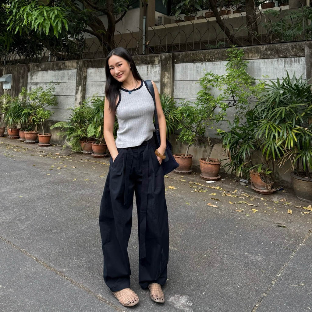 กางเกงทำงานทรงขากระบอกกลาง มีหูใส่เข็มขัด ตะขอหน้า เอวสูง ผ้…