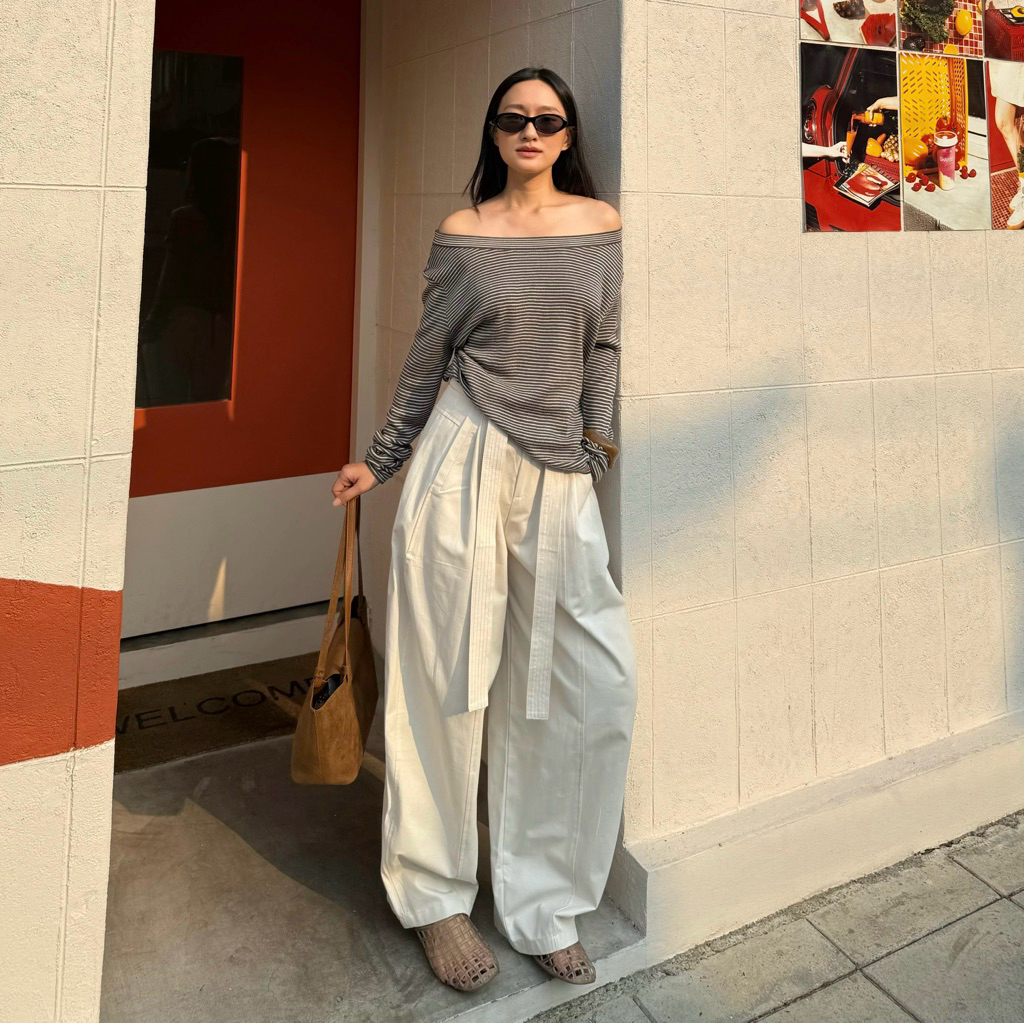 กางเกงลายทาง กางเกงขายาว ทรงหลวม สาวอวบใส่ได้ เอวยืดเยอะ #11…
