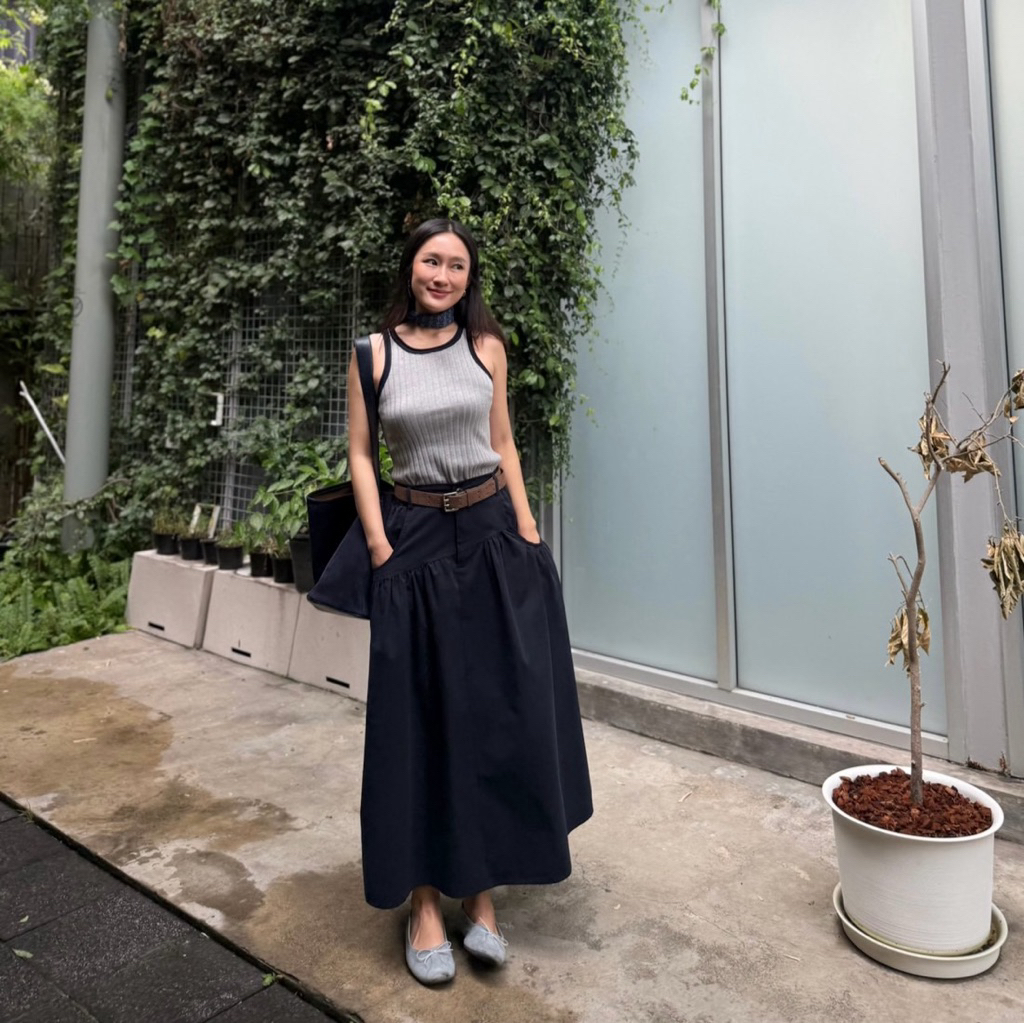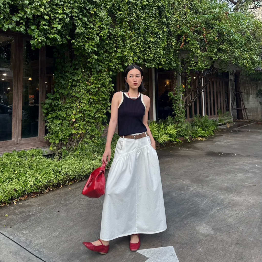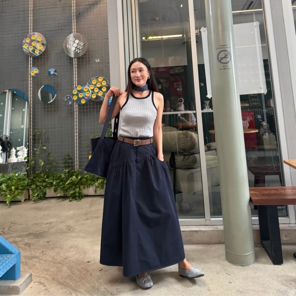 กระโปรงบานยาว ตีเกล็ดเฉียงด้านหน้า